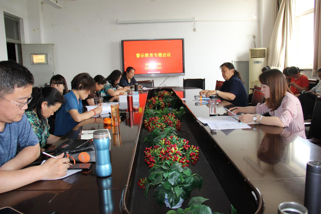在07509会议室召开警示教育大会,全体教师参加了会议,会议由院党委副书记高霞主持。