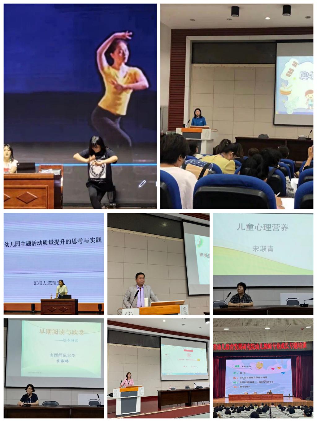 学前教育专业教师作专题报告,涵盖环境创设、绘本阅读、舞蹈创编、音乐教育、节日活动,行为观察等八个主题;研讨交流环节,由禁漫之家