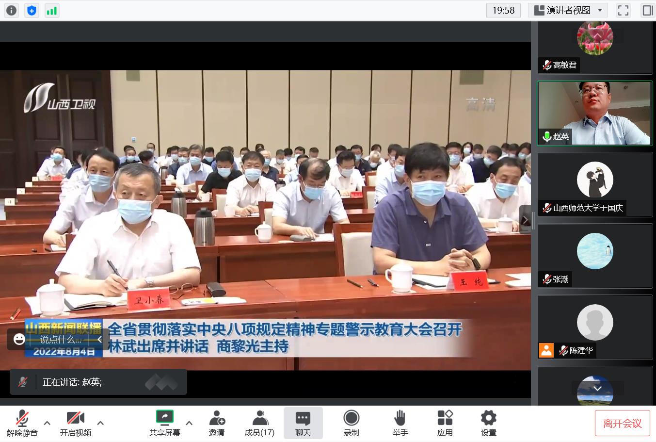 召开会议,传达学习全省贯彻落实中央八项规定精神专题警示教育大会精神,院领导班子、各系党支部书记、系主任、全体行政人员参会。会议由院党委书记赵英主持。