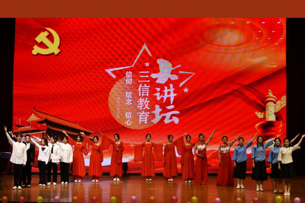 在寓理于演环节,学院八音乐团表演的民乐合奏《盛世国乐》,让经典民乐在新时代的语境中重现,展示了中华民族文化的恒久魅力和青年学子焕发的时代风采。情景剧表演《忆往昔岁月,看今朝少年》展现出新时代青年努力成长为能够担当民族复兴大任的时代新人的奋斗与担当,将爱党爱国爱社会主义的情怀厚植于青年学生心中。红歌声声献给党,同学们用《唱支山歌给党听》《我和我的祖国》两首歌曲唤起红色记忆,在经典旋律中感受党的百年奋斗历程,汲取前行力量。