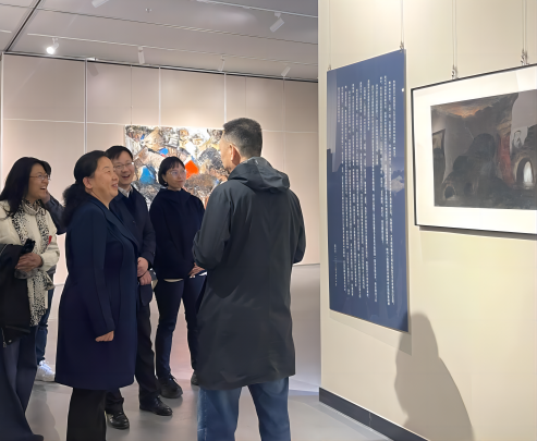 党委书记赵英、院长张潮以及学院在校部分教职工、心理系研究生参观了“印心铸魂”美术画展展览,有幸邀请美术学院院长金小民讲解他的创作过程。