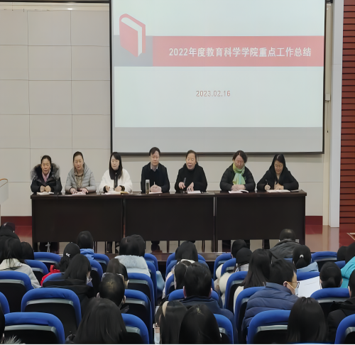 张潮院长首先对2022年度疫情防控期间,全体教工团结协作,共克时艰,勇于担当作为,忠实履职尽责,凝心聚力完成学院各项工作,表达了衷心的感谢,接着张院长从专业建设与本科生培养、学科建设与研究生培养、教师队伍建设与社会服务等四方面总结了学院一年来取得的成果,分析了存在的短板和不足,明确了学院2023年度的各项重点工作。张院长指出,当前学院在专业建设方面的重点工作包括师范专业认证、本科生的人才培养质量提升和实践基地的建设等;学科建设方面的重点工作包括教育学一级学科申博、研究生人才培养质量提升、高层次人才引育、各类标志性成果的持续产出等;社会服务方面的重点工作是产学研合作项目、横向课题的积极申报与获批,争取为我省基础教育发展贡献更多智慧和力量。