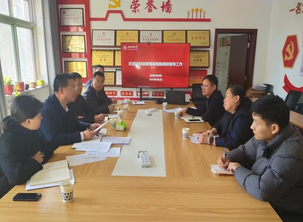 调研指导工作。院党委书记赵英、院长张潮、副院长郑晓俊和科研秘书杨勇勇参会,会议由张潮院长主持。