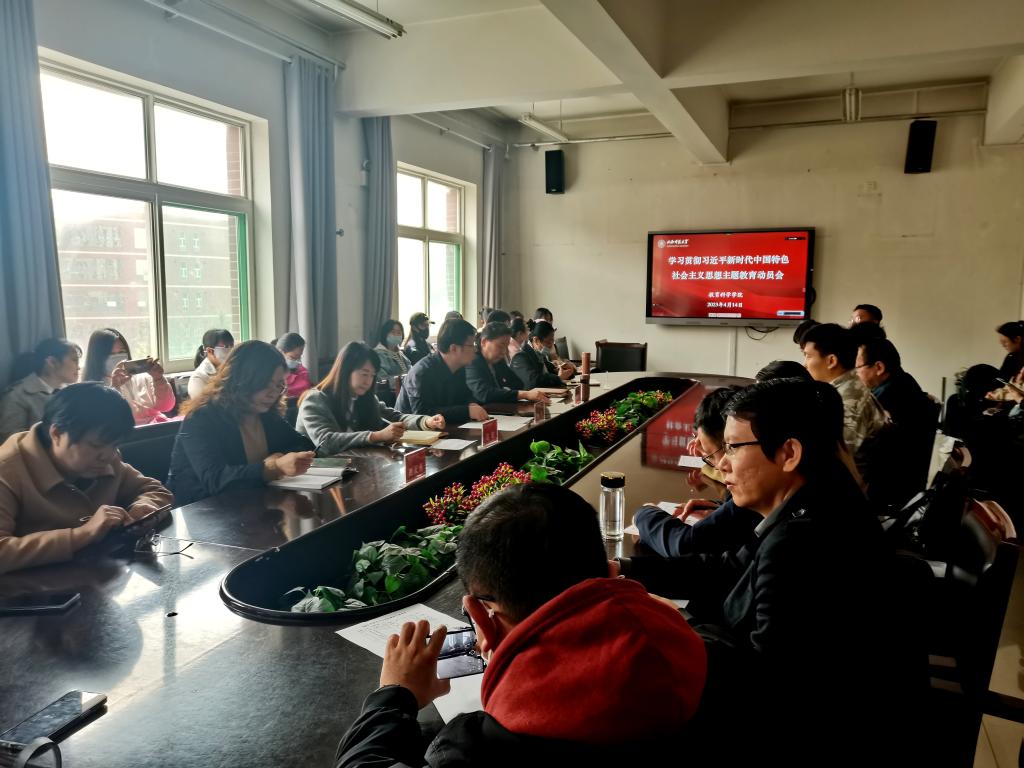 赵英传达了学校主题教育动员会的会议精神,从重大意义、目标任务、组织领导等三个方面做了动员部署。赵英指出,要提高政治站位,深刻认识开展主题教育的重大意义,深入贯彻落实党的二十大精神,切实把思想和行动统一到习近平总书记重要讲话精神和党中央重大决策部署上来;要明确“学思想、强党性、重实践、建新功”的总要求,联系学院建设发展的工作要求,严格落实抓好学习研讨、调查研究、改革发展、检视整改、建章立制等重点工作,坚持学思用贯通、知信行统一,推动主题教育入耳入脑入心入行;要加强组织领导,严格贯彻落实学校主题教育工作方案,各党支部要从严教育管理党员,狠抓党内政治生活质量,强化党员意识,落实主体责任,引导全体师生党员积极投身主题教育,推进主题教育常态化制度化长效化。赵英强调,全院师生党员要提高党性站位,凝聚思想认识,把思想和行动统一到学院的决策部署上来,做到“院有所呼,我有所应”,合力推动学院高质量发展。