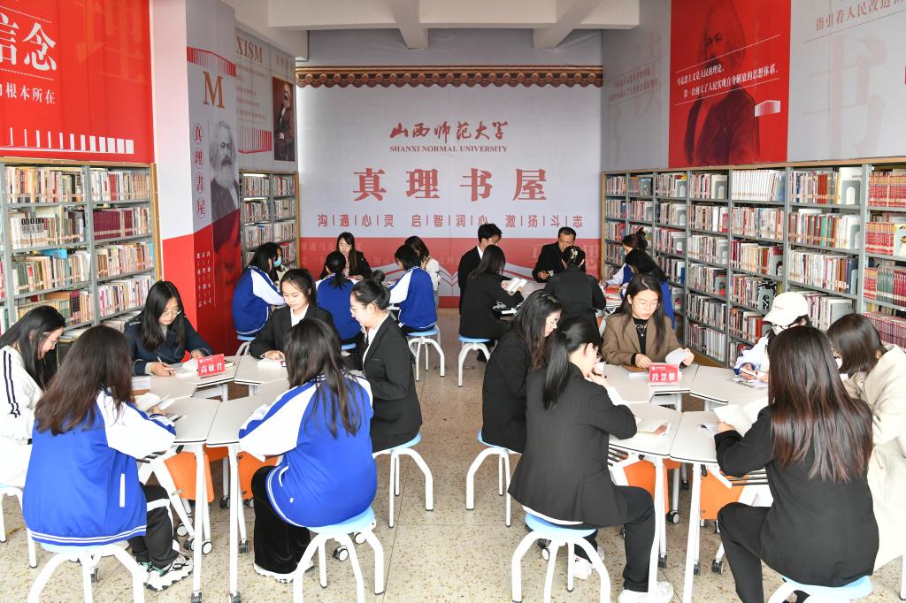 在图书馆“真理书屋”开展了“学思想·读经典”主题读书活动。校党委宣传部副部长丁旭东及学院20余名师生代表参加了读书活动,活动由院党委副书记高霞主持。