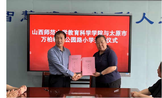 院长张潮、院长助理、教育系主任李慧燕和李霞老师赴太原市万柏林区公园路小学进行参观交流,并与太原市万柏林区公园路小学成功举行了教学科研实践实训基地的签约授牌仪式。
