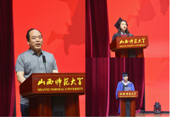 “我们的四年温暖而和煦,学生会的同伴们举办形式丰富的活动,专业课的老师们亦师亦友……”“我们在这三年的课程、实验、调研、论文、实习、求职之中,锤炼了自己的意志力、坚韧力和自制力……”本科毕业生代表刘智霞与硕士毕业生代表宋金泽深情回顾了自己的大学生活,并代表全体毕业生向学院、师长和亲友表达衷心的感谢和美好的祝愿。