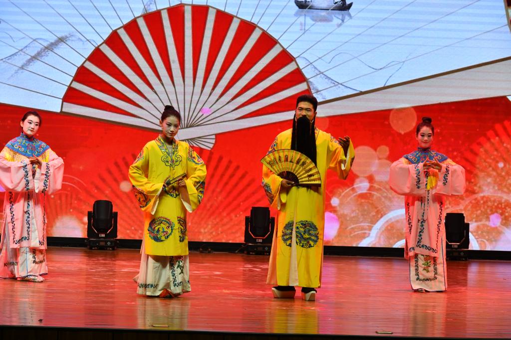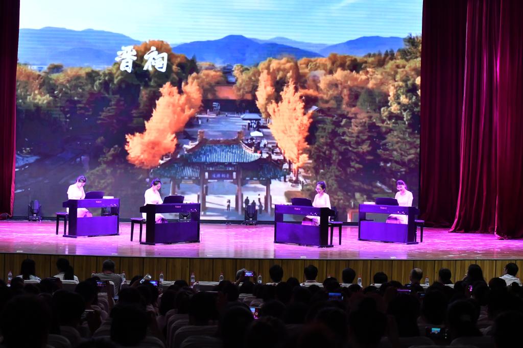 开幕式前,由我校师生带来了山西民间舞《幸福花开》、男高音独唱《永远跟党走》、晋剧《打金枝·坐宫》、钢琴联奏《桃花红杏花白》《远方的客人请你留下来》、少儿舞蹈《瞧这些小妞们》等暖场表演,将现场气氛不断推向高潮。