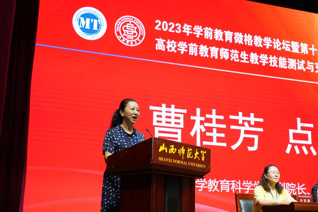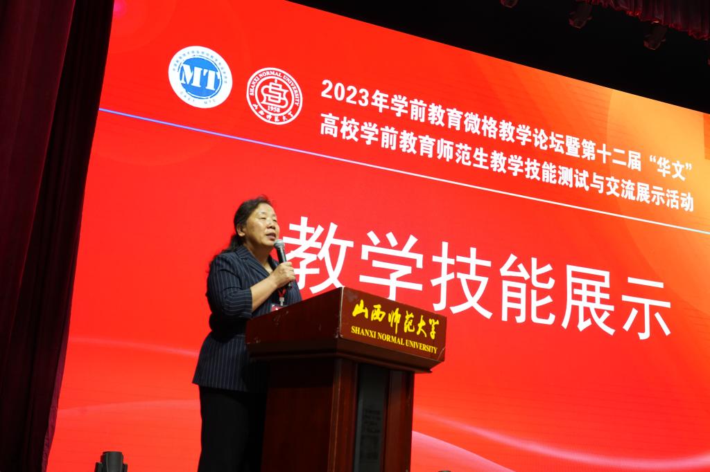 副院长、山西师大幼儿园园长曹桂芳老师从教育目标全面化、教育内容生活化、教育方法游戏化、教育手段现代化、技能展示专业化和综合化等五个方面对此次展示活动进行了点评。她希望同学们以本次活动为新起点,不断提高自己的综合素质和教学技能水平,努力使自己成为符合时代要求的“高素质、专业化、创新型”人才。