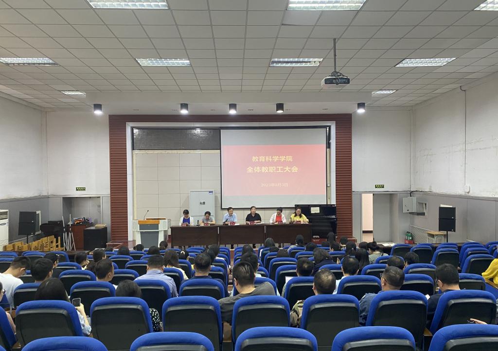 2023年9月3日下午,学院在实验楼一层阶梯教室召开新学期全体教职工大会。全体院领导及教职工参加会议,会议由赵英书记主持。
