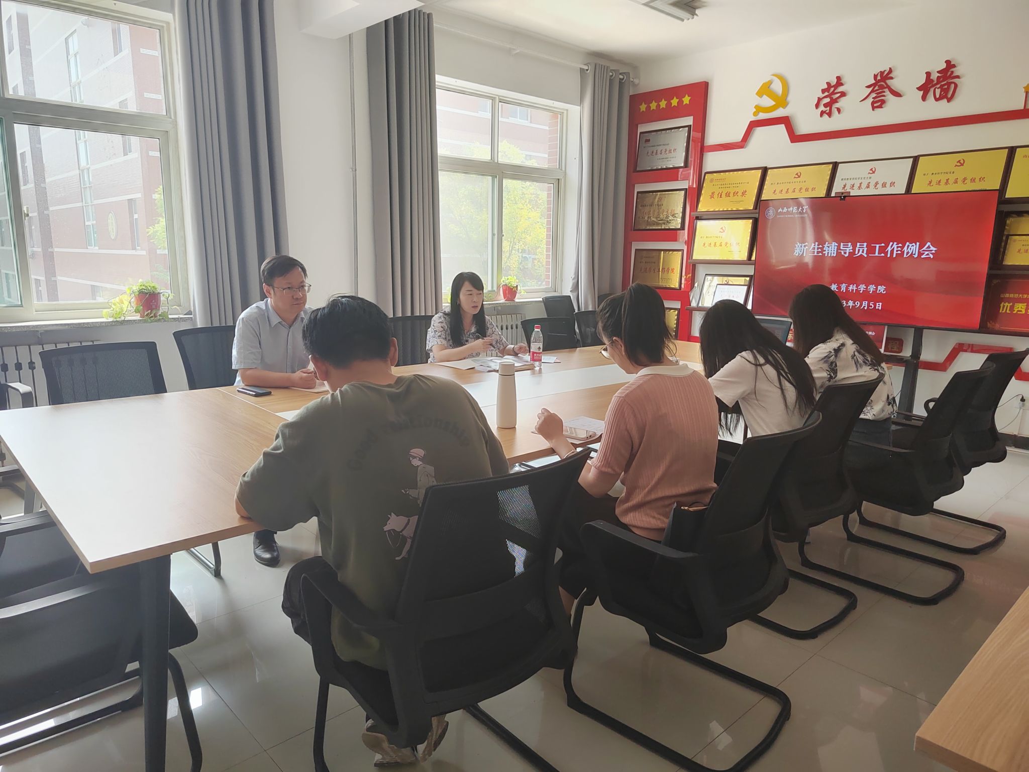 在八号教学楼201会议室召开本学期第一次辅导员工作例会,就迎新和入学教育工作作出安排部署。院党委书记赵英出席会议,2023级新生辅导员参加了会议,会议由院党委副书记、学工组长高霞主持。