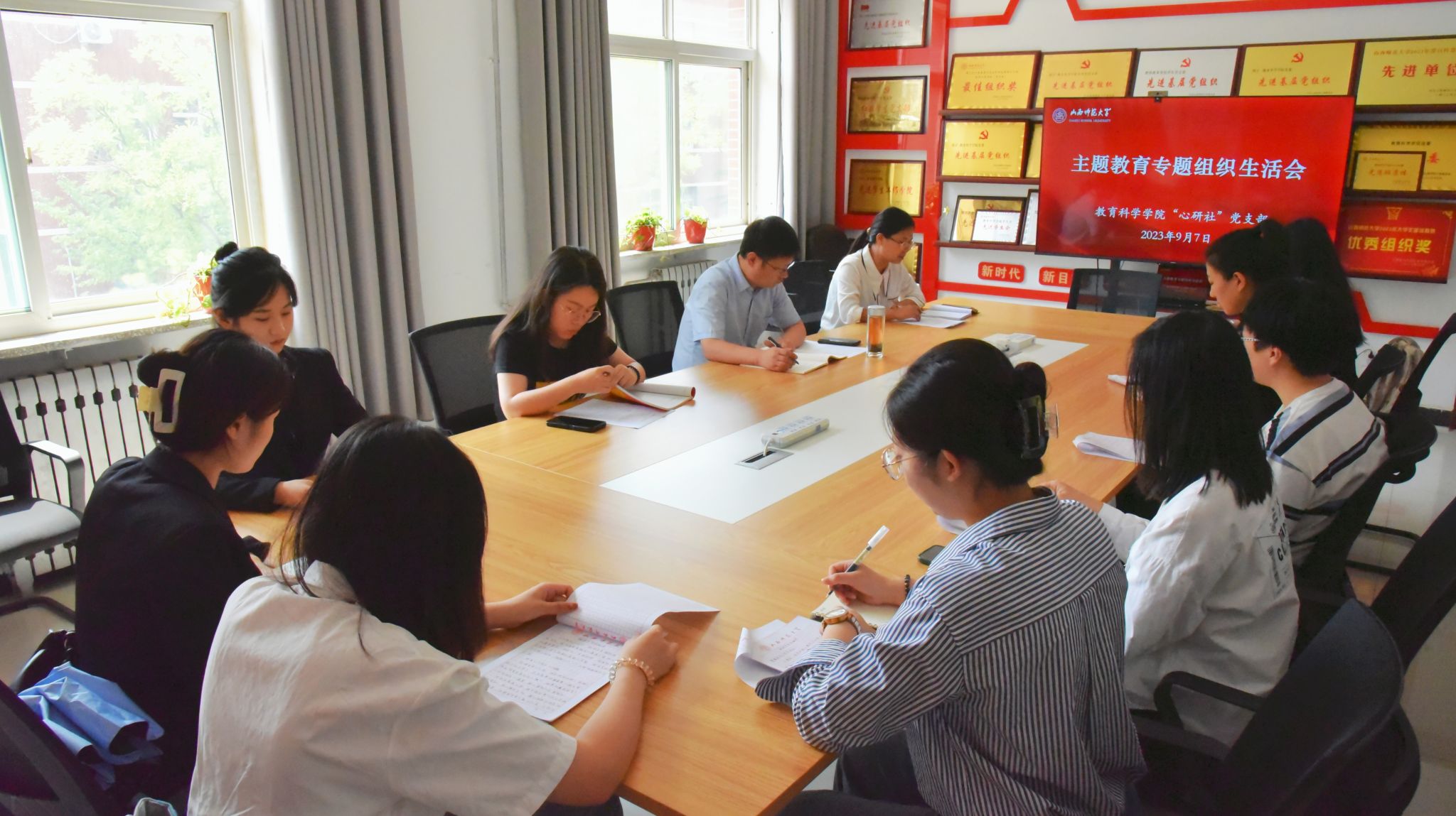 9月7日,“心研社”党支部在8号楼201会议室召开了主题教育专题组织生活会,院党委书记赵英到会指导,党支部全体党员参加会议,会议由党支部书记高敏君主持。