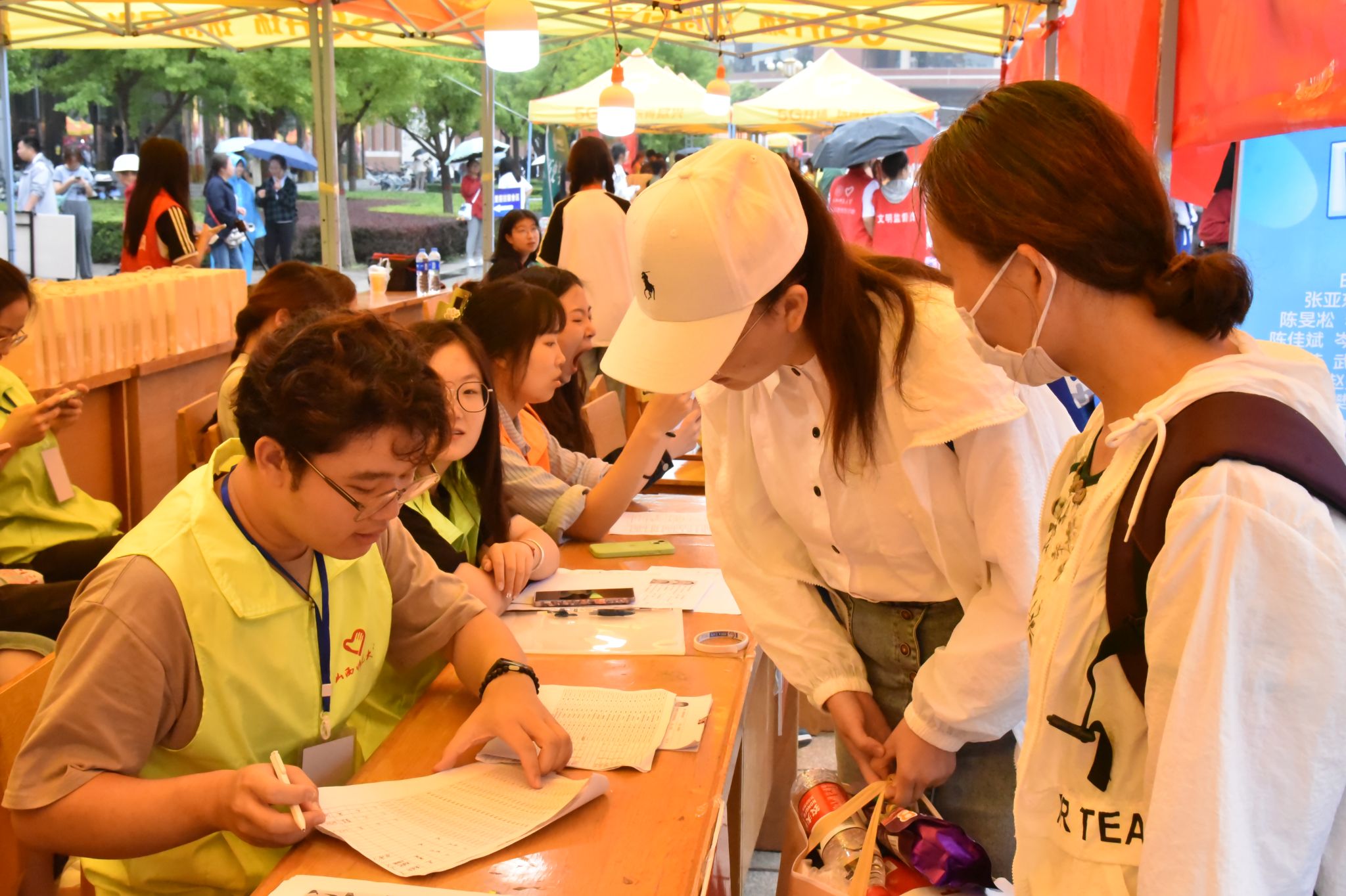 在遍布校园的帐篷下