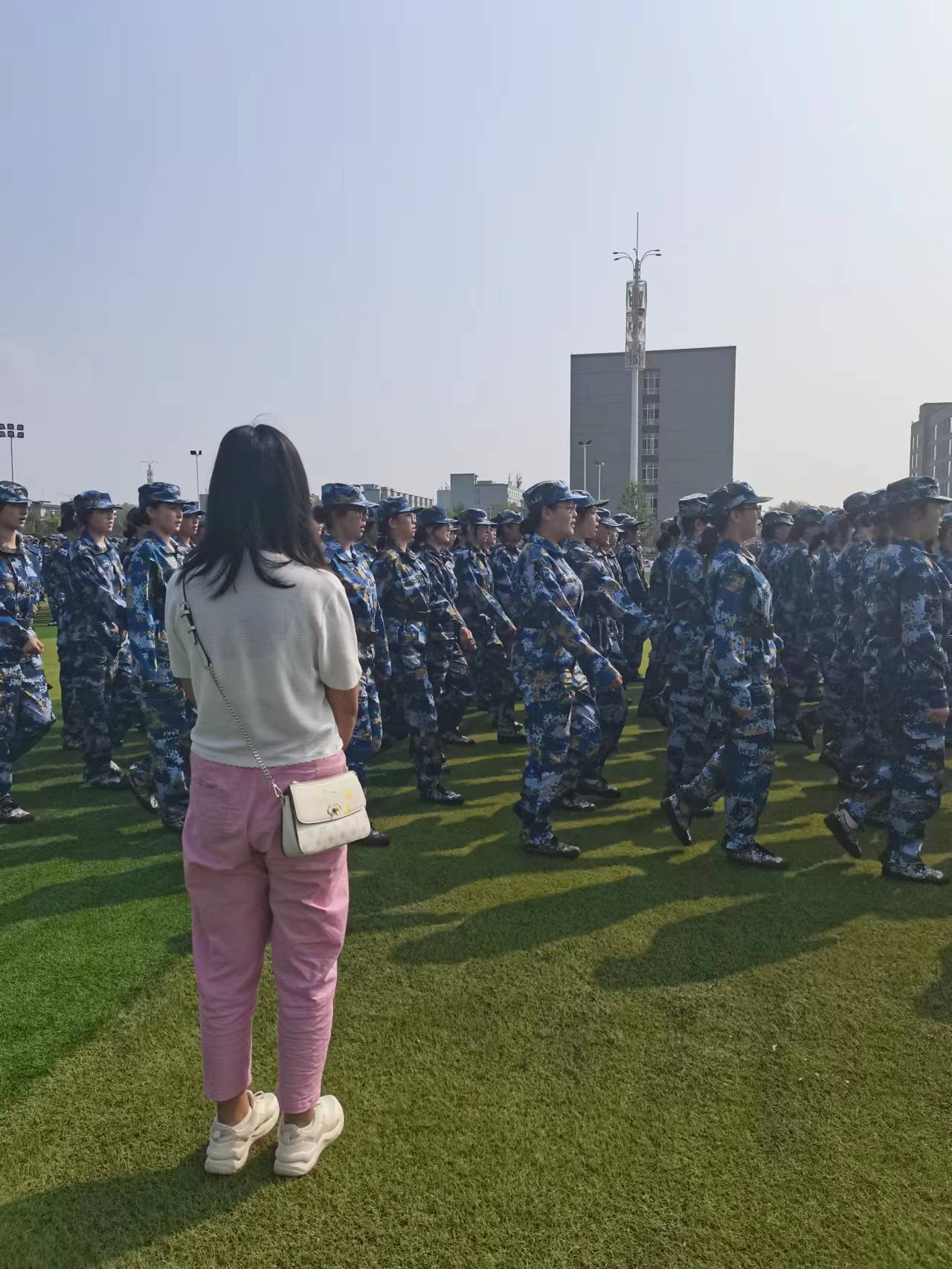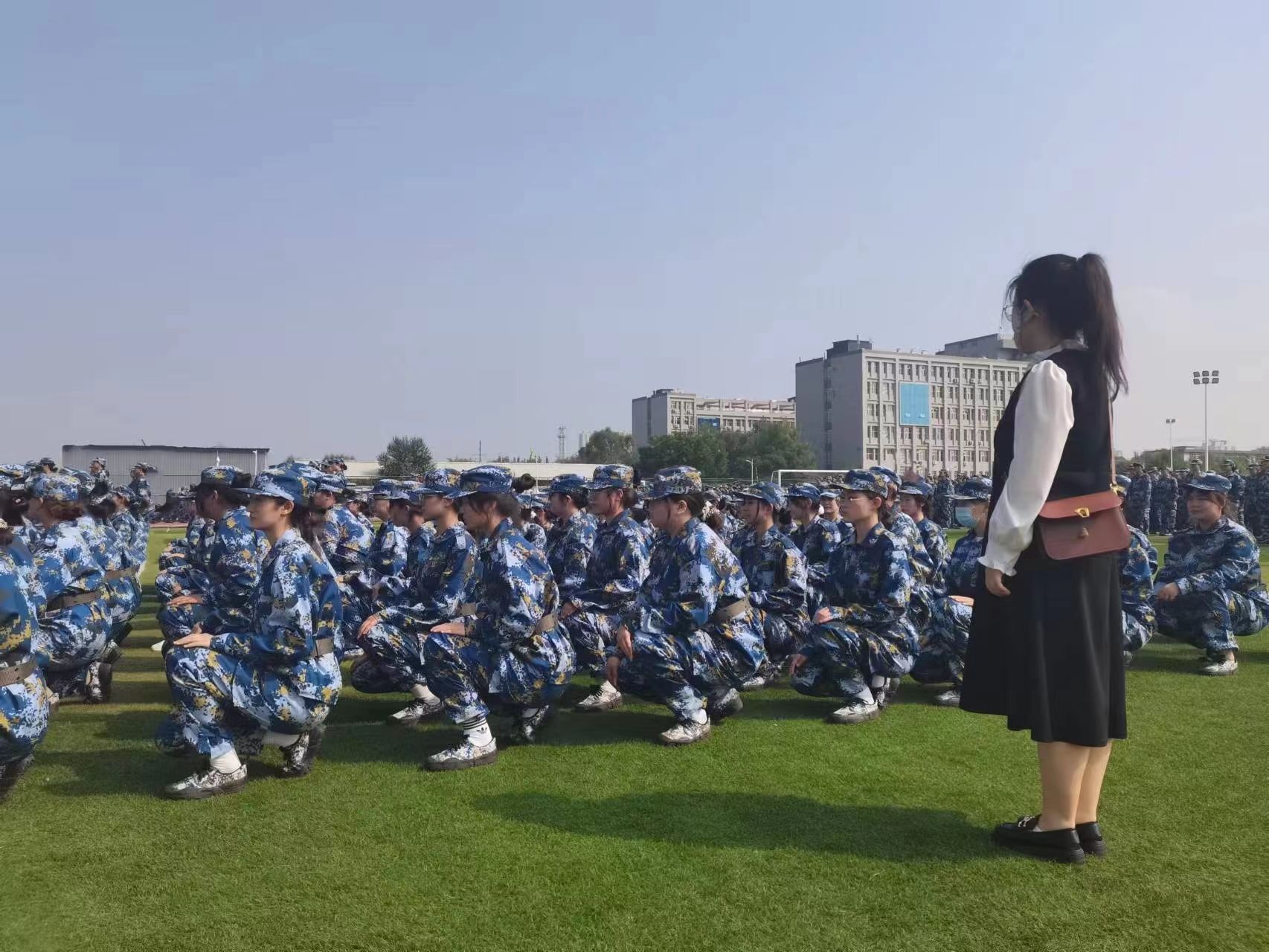 党委书记赵英、院党委副书记高霞及新生辅导员一同前往训练场地,为教官和军训学生送去温暖和关怀。