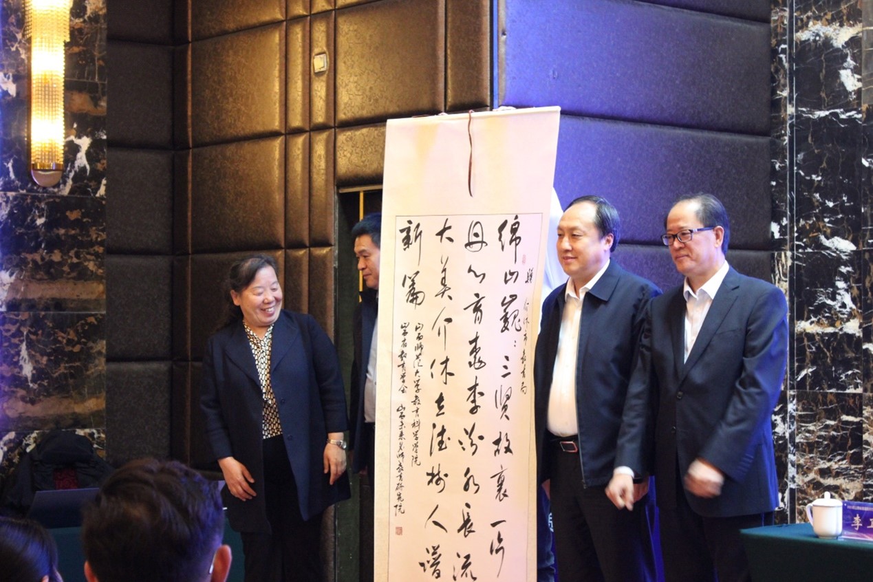 开幕式中,陈晓力秘书长与张潮院长为介休市教育局赠送了一幅墨宝,表达了主办方对介休教育局承办本次论坛的诚挚祝福与感谢!