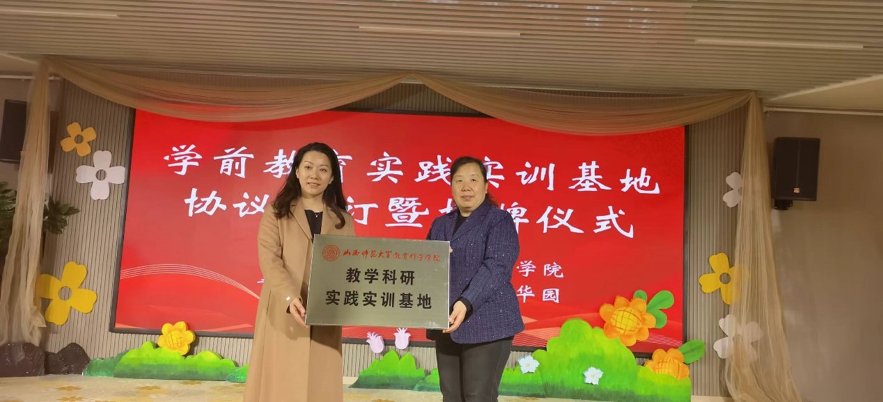 院长张潮、院长助理兼教育系主任李慧燕、学前教育系系主任范瑞芝、学前教育系教师曾庆秦、贺晓丽博士等一行赴晋中市第一幼儿园文华园进行交流,并顺利举行了“教学科研实践实训基地”授牌及签约仪式。
