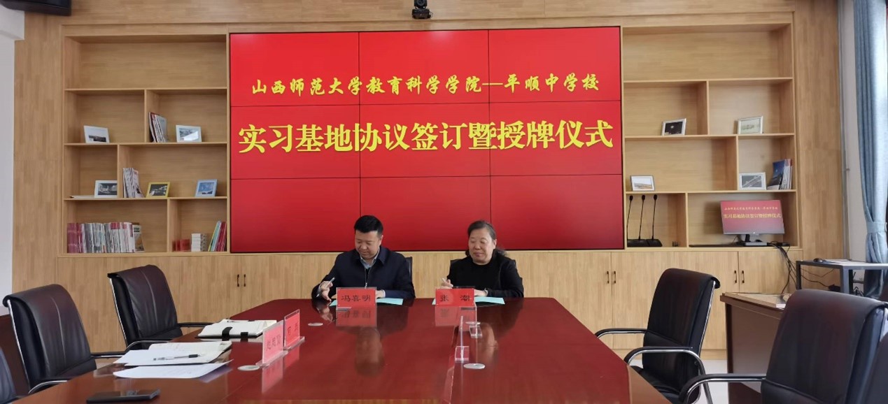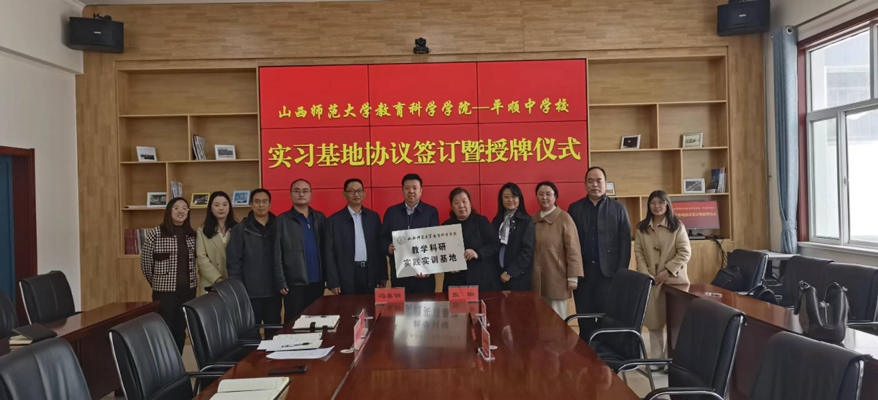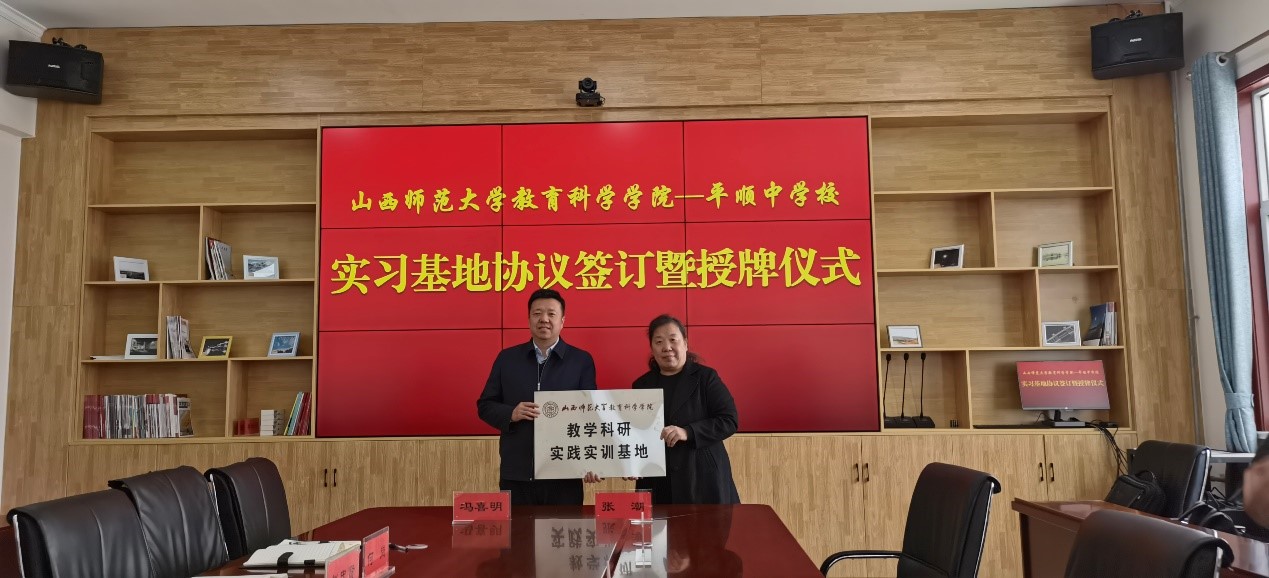 院长张潮、挂职副院长兼教育技术系系主任郑晓俊、院长助理兼教育系系主任李慧燕、心理系系主任张睆、学前教育系教师兼教学秘书贺晓丽一行赴山西省长治市平顺中学校进行交流,并顺利举行了“教学科研实践实训基地”签约及授牌仪式。