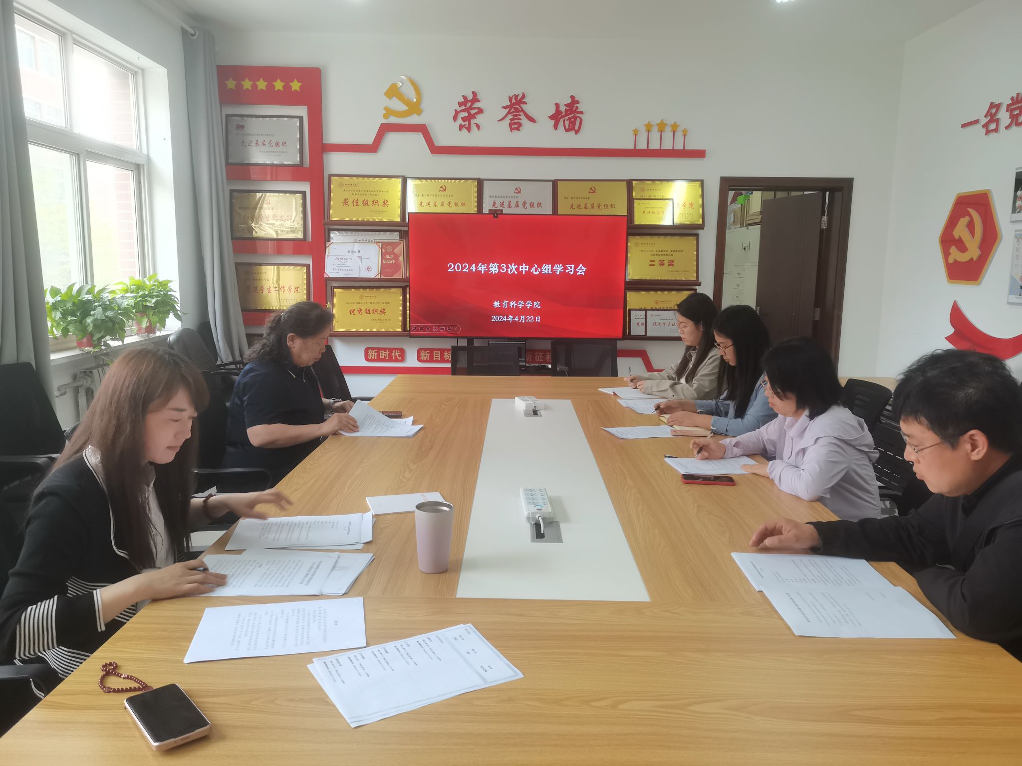 在8号楼201会议室举行党纪学习教育第1期读书班暨党委理论学习中心组2024年第3次集体学习会,学院中心组成员参加了会议,会议由院党委副书记高霞主持。