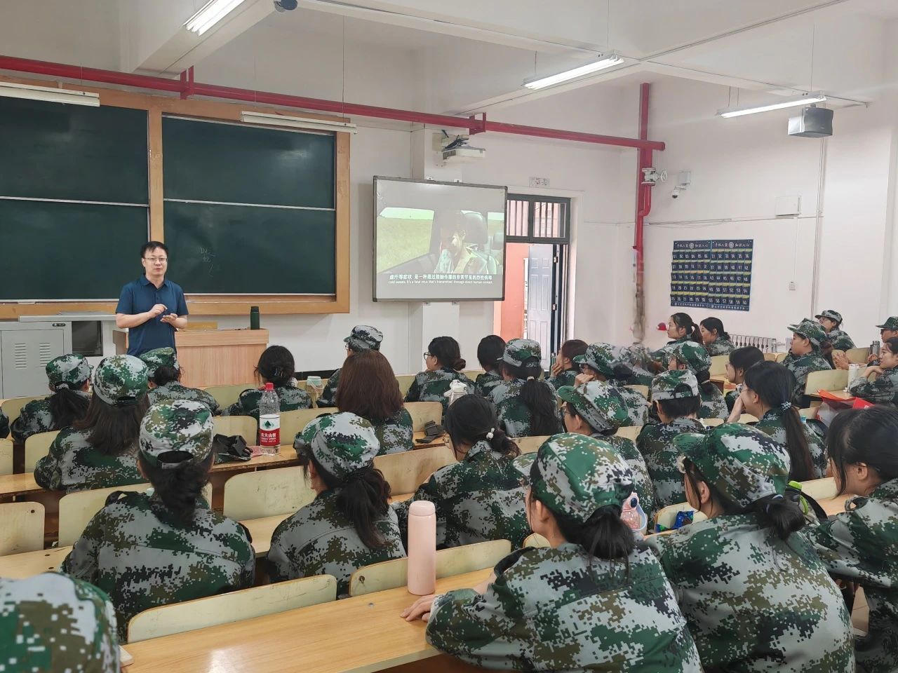 2024年7月15日,院党委书记赵英深入班级、课堂,看望禁漫之家 正在军训的2022级学生,全体带班辅导员一起参加。