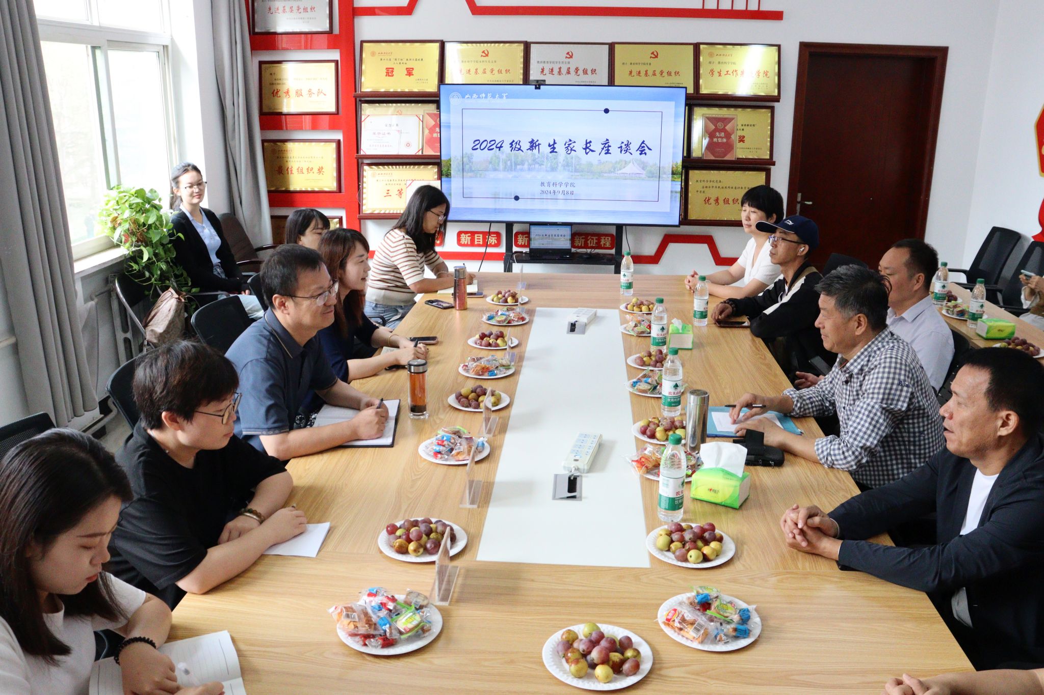 在8号教学楼201会议室召开2024级新生家长座谈会。院党委书记赵英、院党委副书记高霞及全体新生辅导员出席会议,会议由院党委副书记高霞主持。