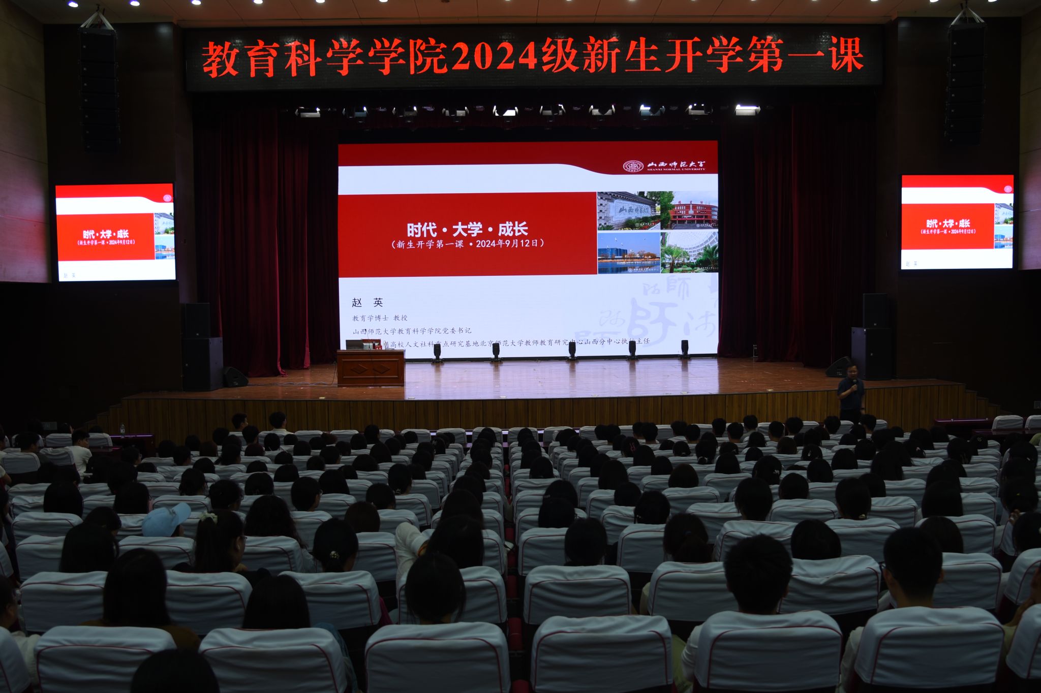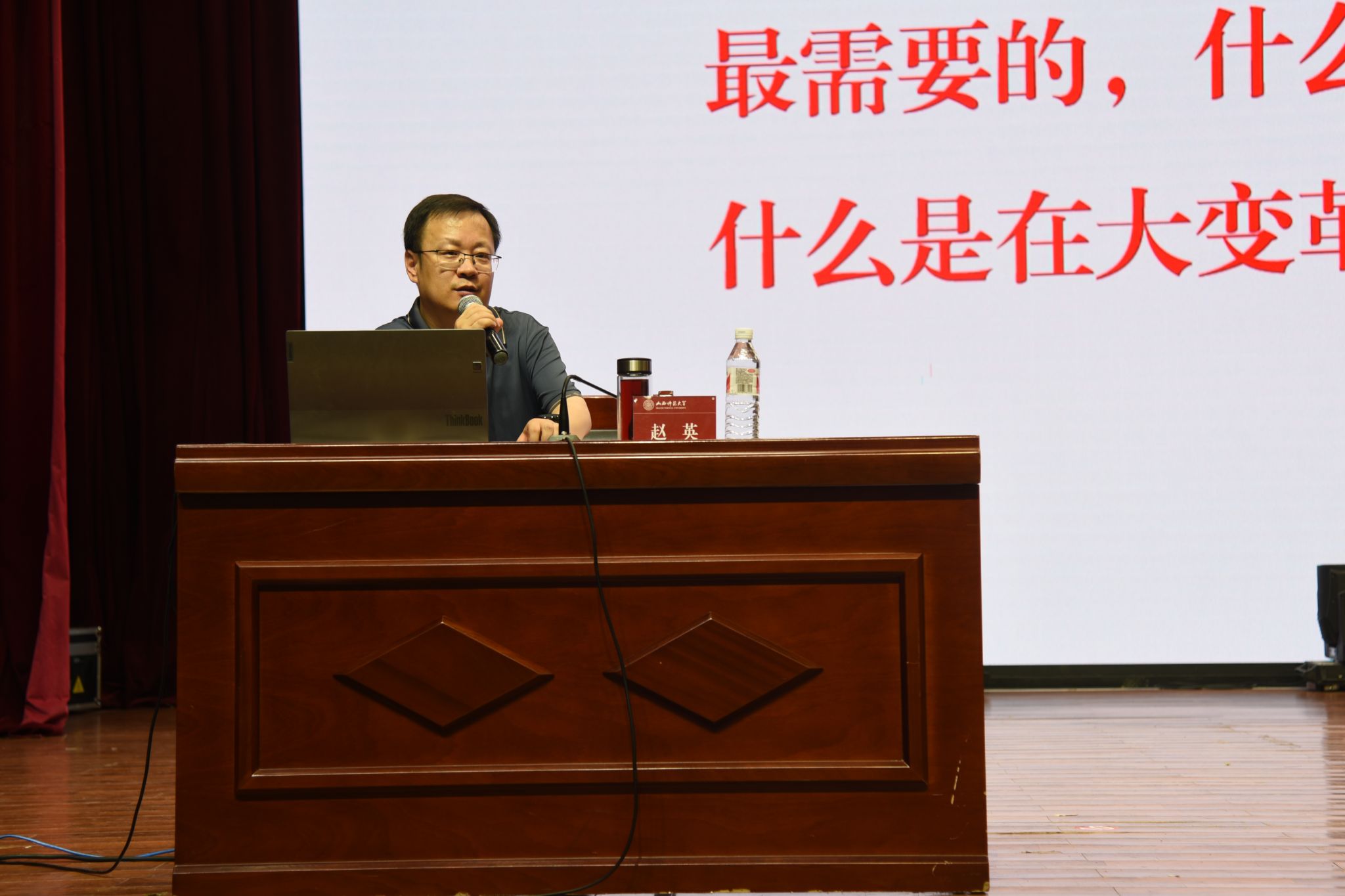2024年9月12日,院党委书记赵英教授以《时代•大学•成长》为题,在科学会堂报告厅为2024级全体新生讲授“开学第一课”。