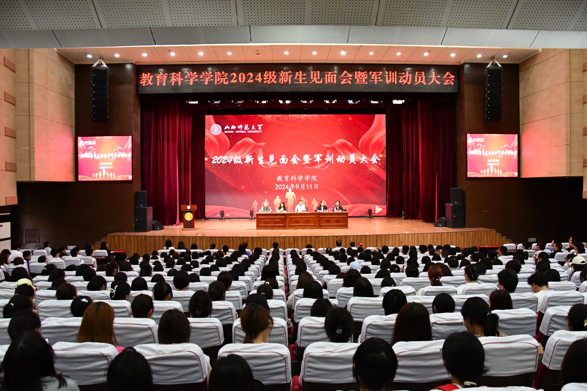 在科学会堂报告厅召开2024级新生见面会暨军训动员大会,全体院领导、各系主任、院行政干部、教师代表、院团委学生会代表、2024级新生辅导员、2024级全体本科新生参加了会议。会议由院党委书记赵英主持。