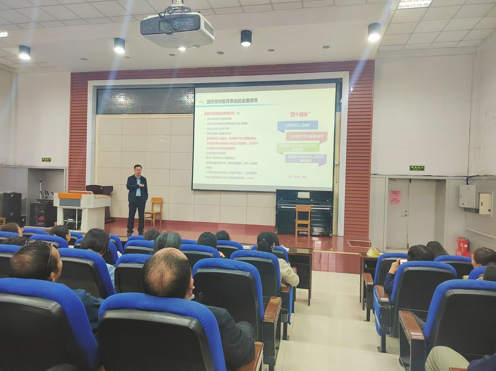 在实验楼一层阶梯教室召开党委理论学习中心组2024年第10次学习会暨全体教职工专题学习会,集体学习习近平总书记《论教育》。院党委书记赵英主持学习会并进行了领学。