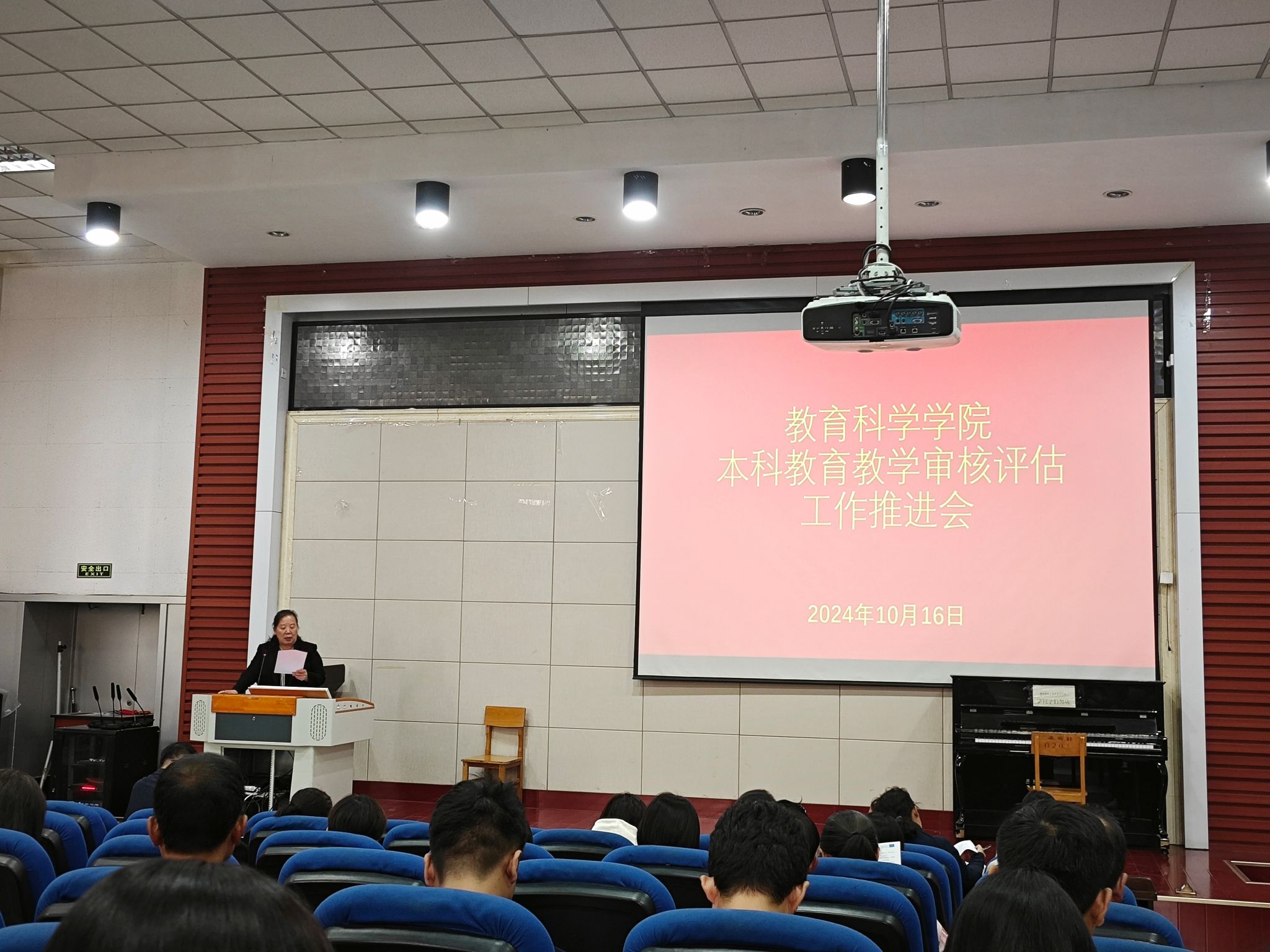 在南区实验楼一层报告厅召开本科教育教学审核评估工作推进会。学院领导及全体教职工参加了会议。