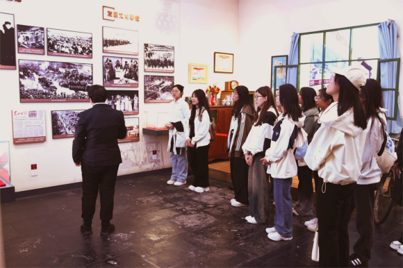 团委带领团员和青年前往中国共产党太原历史展览馆,开展参观学习活动。在参观过程中,同学们跟随讲解员的脚步进入到“时光隧道”展示区,屏幕上徐徐展开的历史画卷展现了党自1921年成立以来到如今中国特色社会主义新时代的百年奋斗史和辉煌史。身临其境,同学们在聆听、思考中厚植忠诚底色,在追忆、展望中坚定信仰担当。