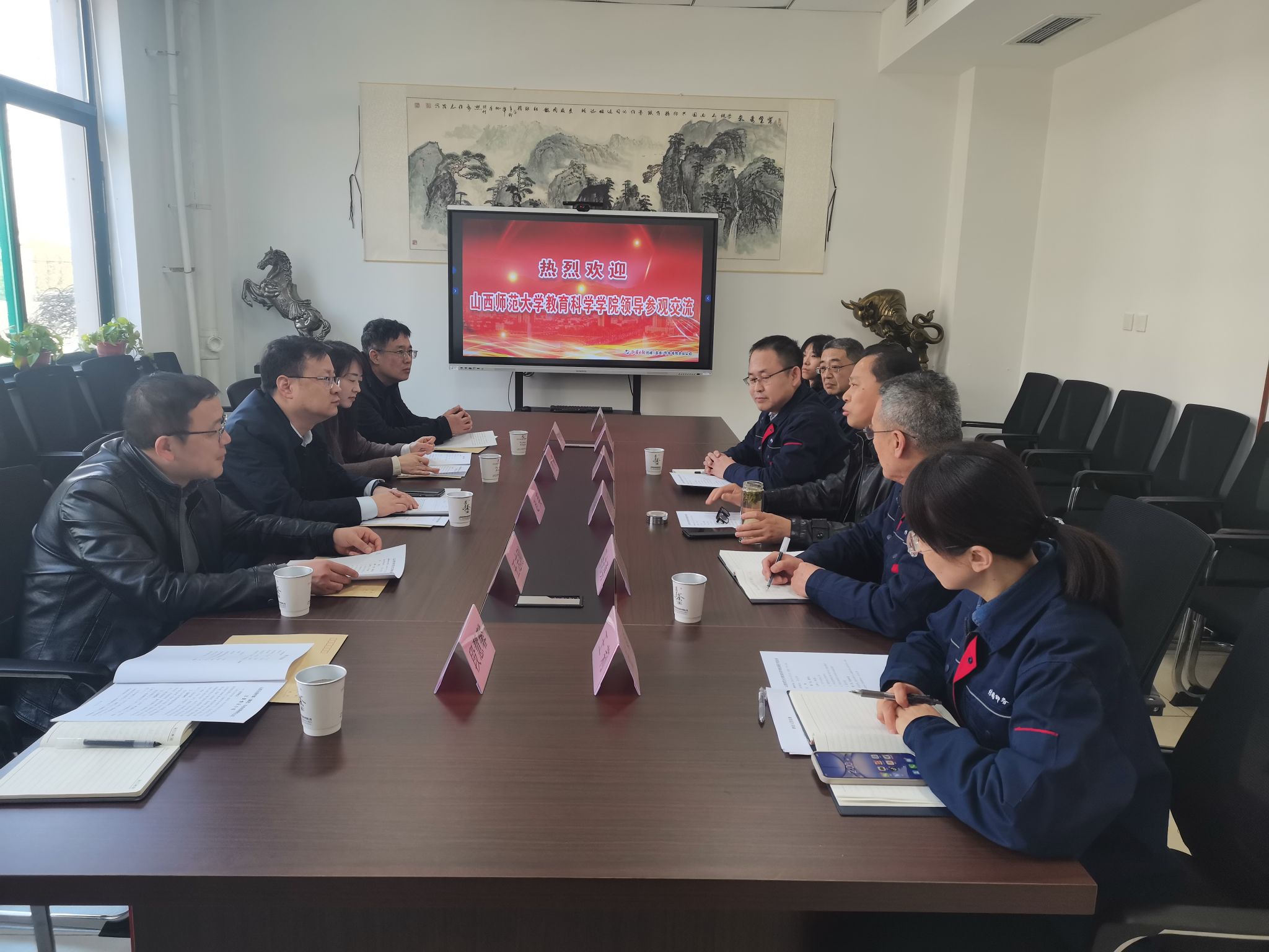 印务公司总经理冯应国介绍了印务公司的发展历程、组织架构、主要业务等方面的发展概况。赵英书记介绍了学院学科建设、专业发展、人才培养、学生就业等方面的基本情况。院企双方围绕党组织联组共学、职工心理健康测评、学生实习实践等展开了深入交流,达成了合作意向,并就双方人才培养和社会服务转型发展等达成了共识。