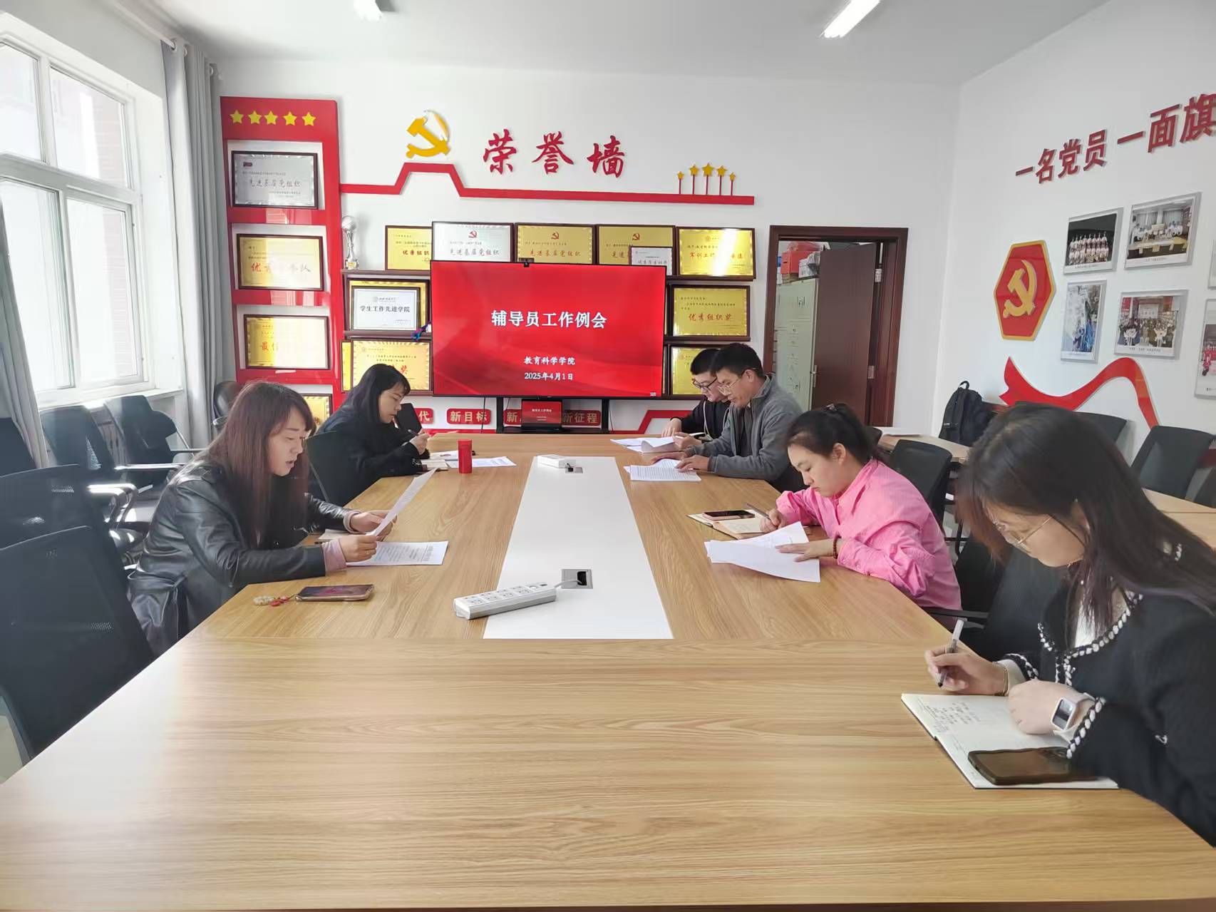 在8号教学楼201会议室召开本学期第二次辅导员工作例会暨就业工作推进会。本科毕业班辅导员郝媛媛、于国庆、高文婧及研究生毕业班辅导员许施扬参加会议,会议由院党委副书记、学工组长高霞主持。