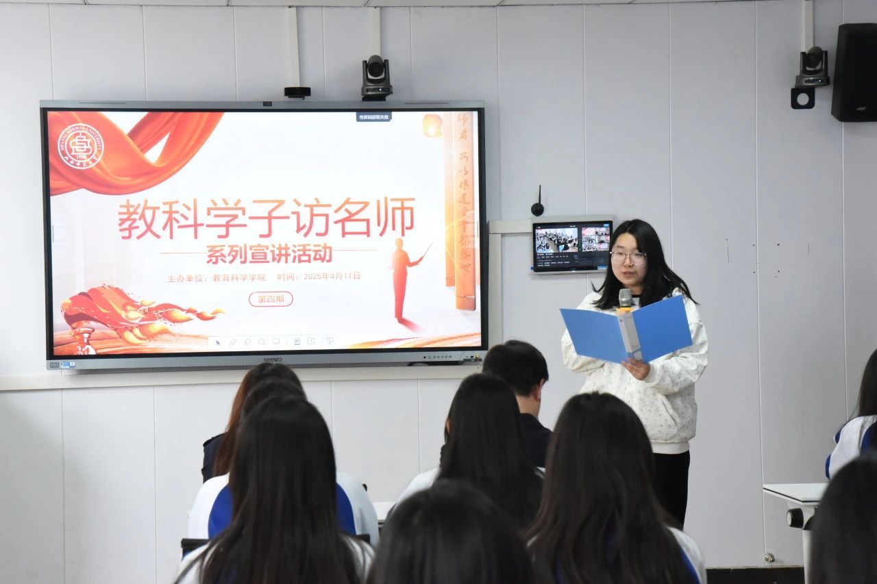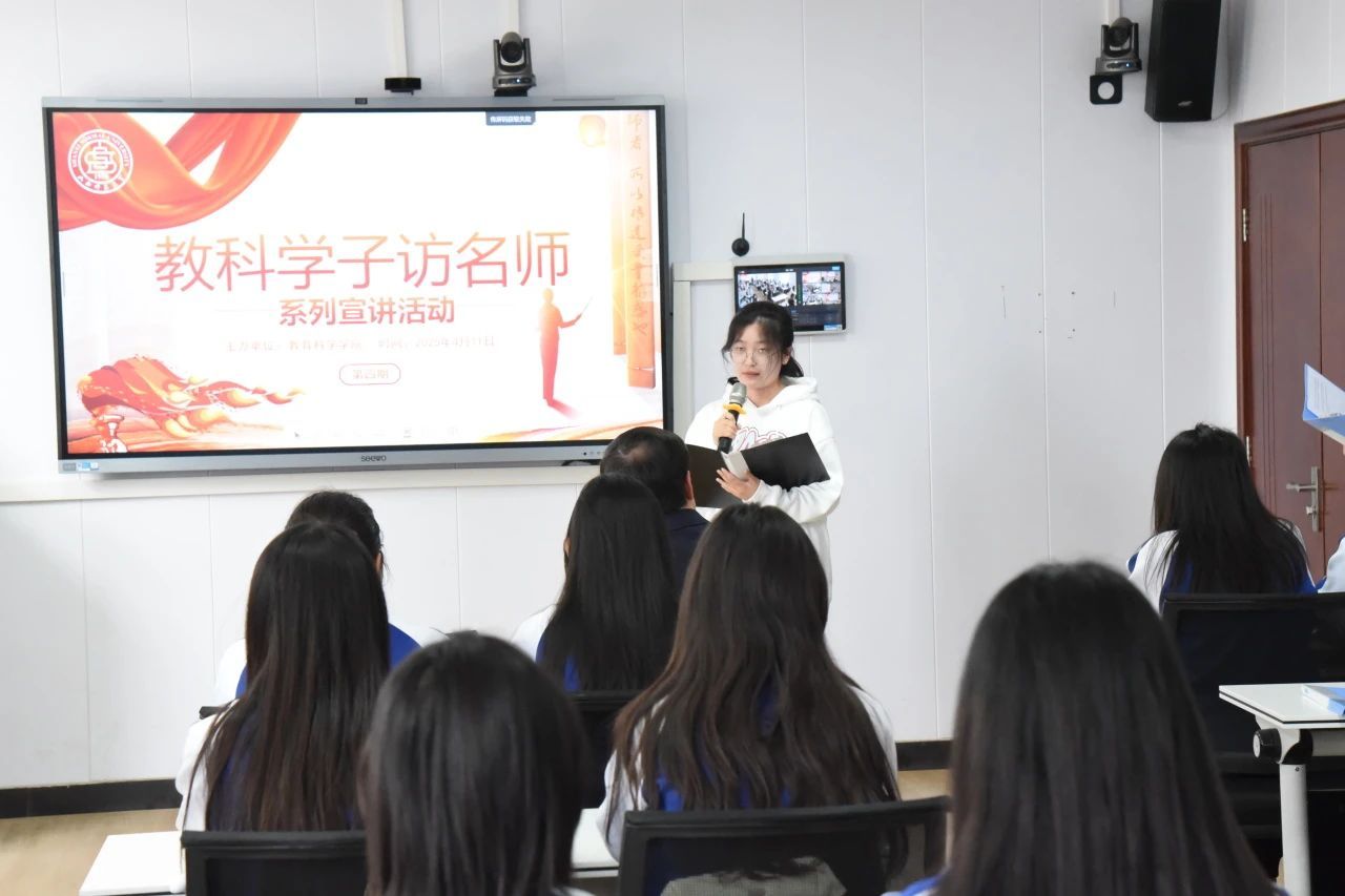 在南区8号楼212会议室举办教科学子访名师第四期宣讲活动。院党委书记赵英、院党委副书记高霞、院团委副书记高敏君及20余名学生代表参加了此次活动。