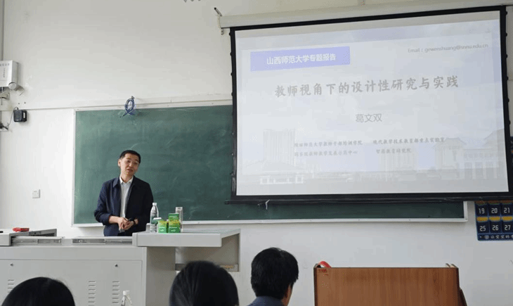 2025年5月9日下午,陕西师范大学教师干部培训学院副院长、陕西省教师教育指导中心主任葛文双副教授应邀在我校南区3号教学楼3305教室作学术讲座,讲座由李志河教授主持,教育技术系师生共同聆听了讲座。