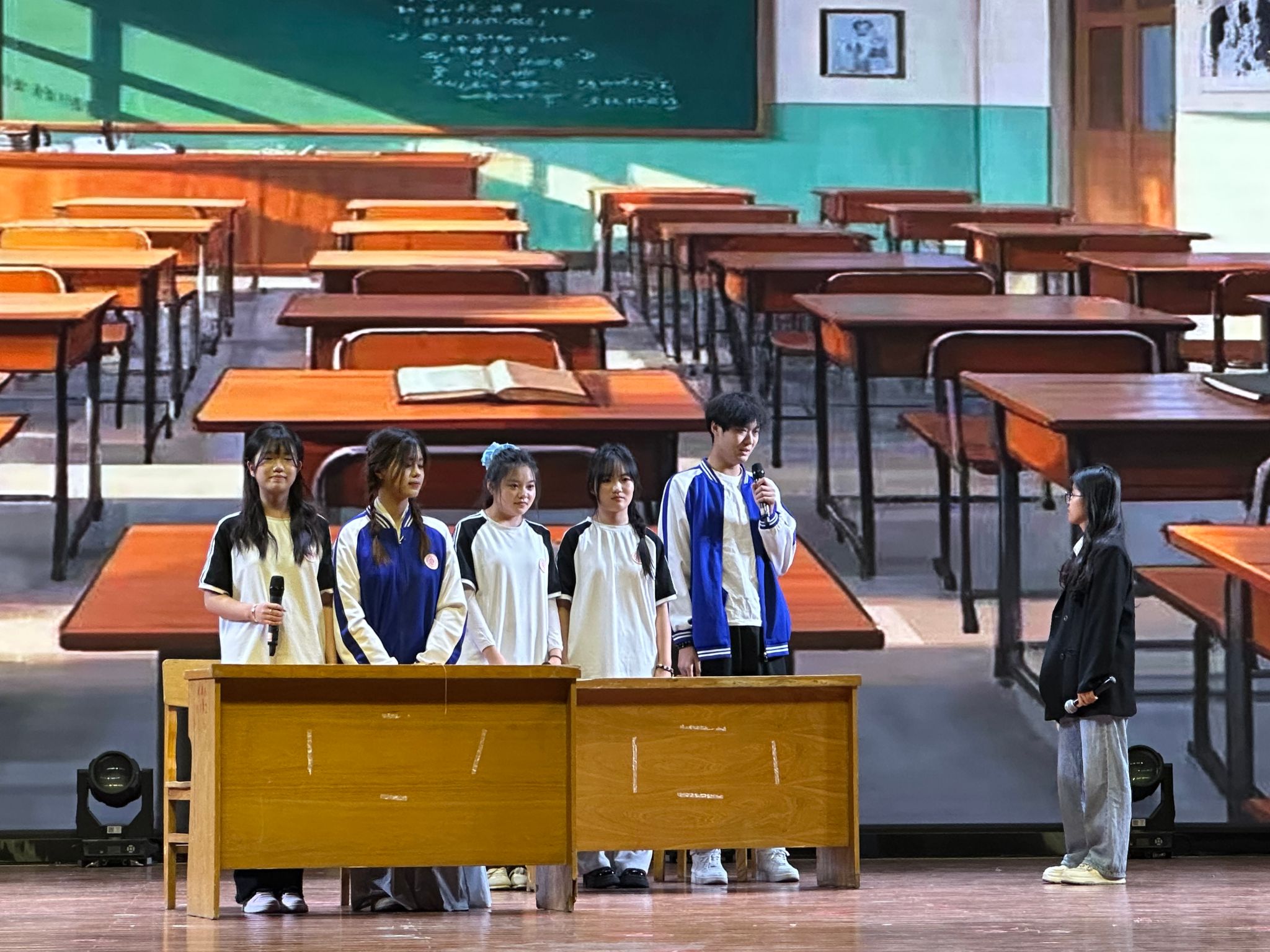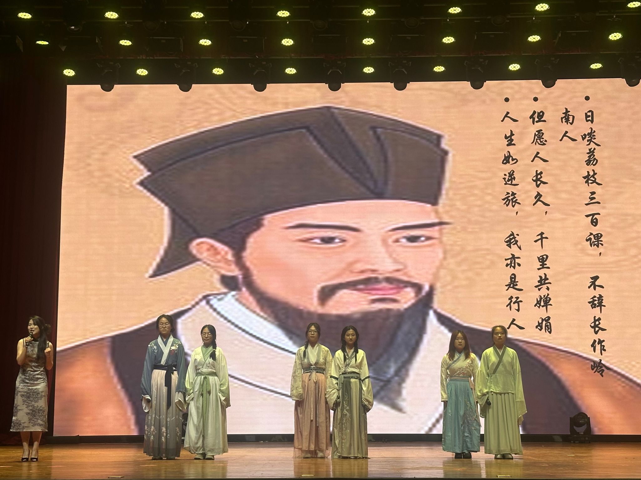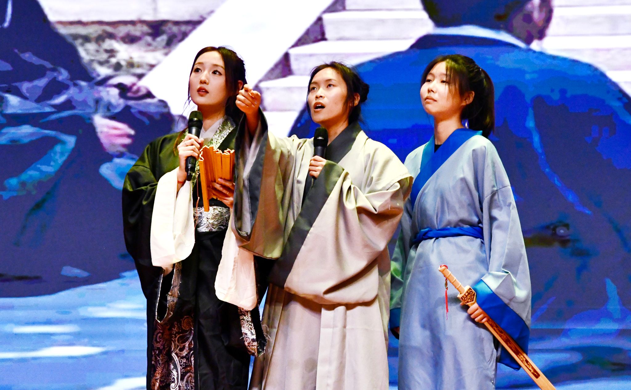 开场舞《小卜少》让观众在曼妙舞姿里,感受傣族文化中人与自然和谐共生的浪漫与独特魅力。情景剧《古今师道之新说》通过古今对话,深入探讨教育理念的传承与发展;《破晓》生动展现了革命先辈为理想信念不懈奋斗的光辉历程;《泊秦淮》以深沉笔触警示青年铭记历史、勿忘国耻;《都是为你好》演绎传统亲情,引发观众情感共鸣;《苏东坡》辅之古筝伴奏,生动再现文豪豁达洒脱的人生态度;《传统文化不能忘》则以诙谐幽默的方式,呼吁大家守护与传承中华优秀传统文化根脉。