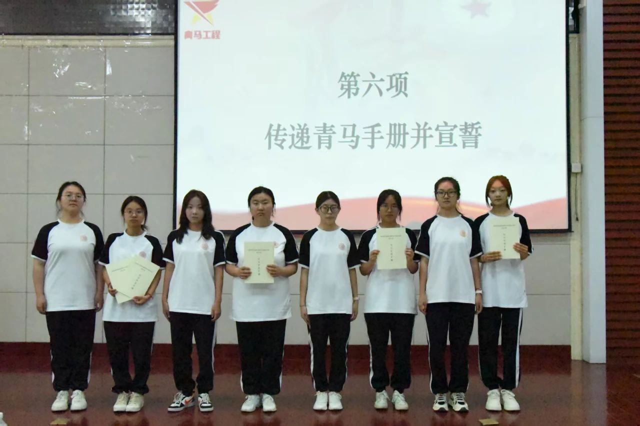 两期青马学员在激扬庄重的歌声中传递了青马手册,并面向团旗宣誓,继续发挥先锋模范作用,以青春热血展时代风采。