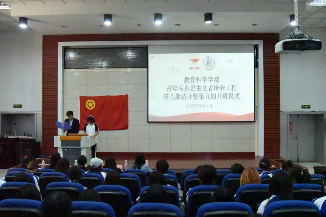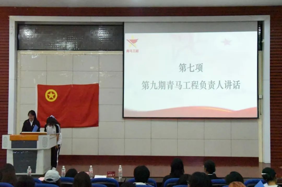 青年马克思主义者培养工程第八期结业暨第九期开班仪式在实验楼一层报告厅举行。院团委书记高敏君、学生团委副书记侯锦佳及全体青马学员参会。