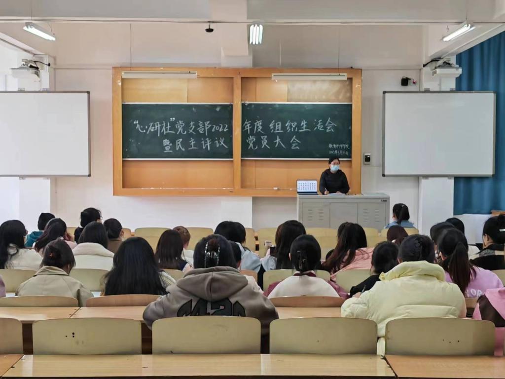 3月13日,“心研社”党支部在5108教室及8201会议室以线上线下相结合的形式召开了2022年度组织生活会暨民主评议党员会议,院党委书记赵英到会指导。党支部书记高敏君主持会议,全体党员参加会议。