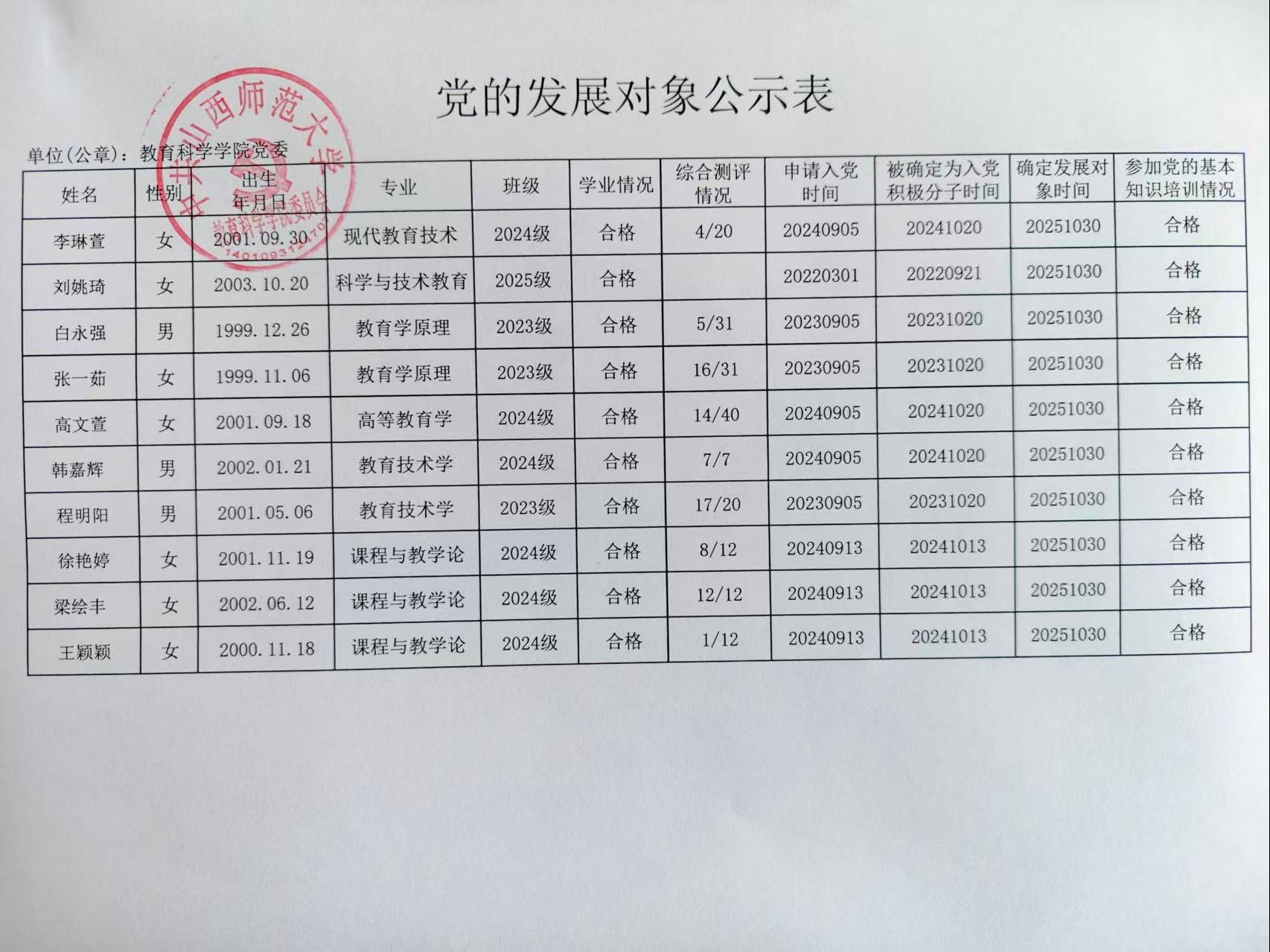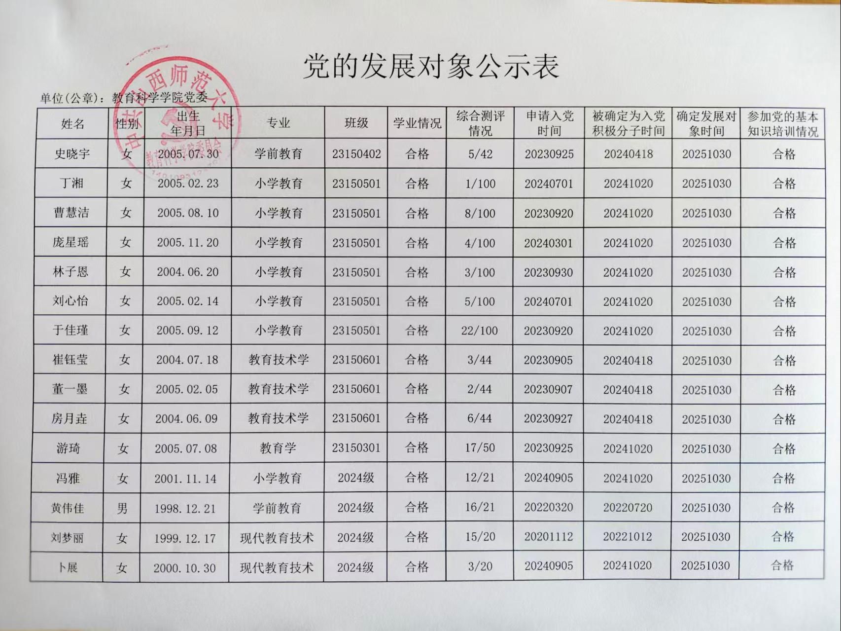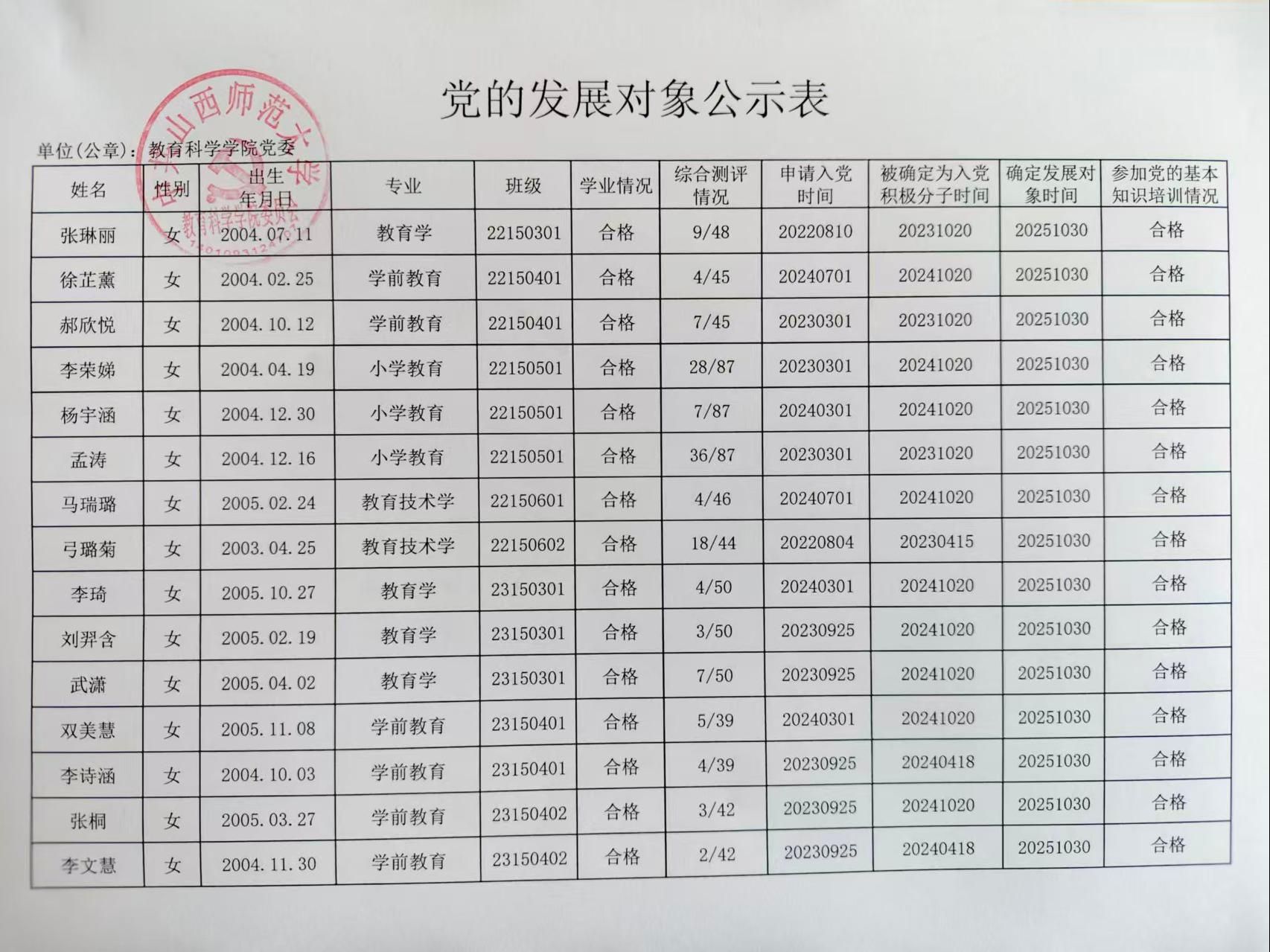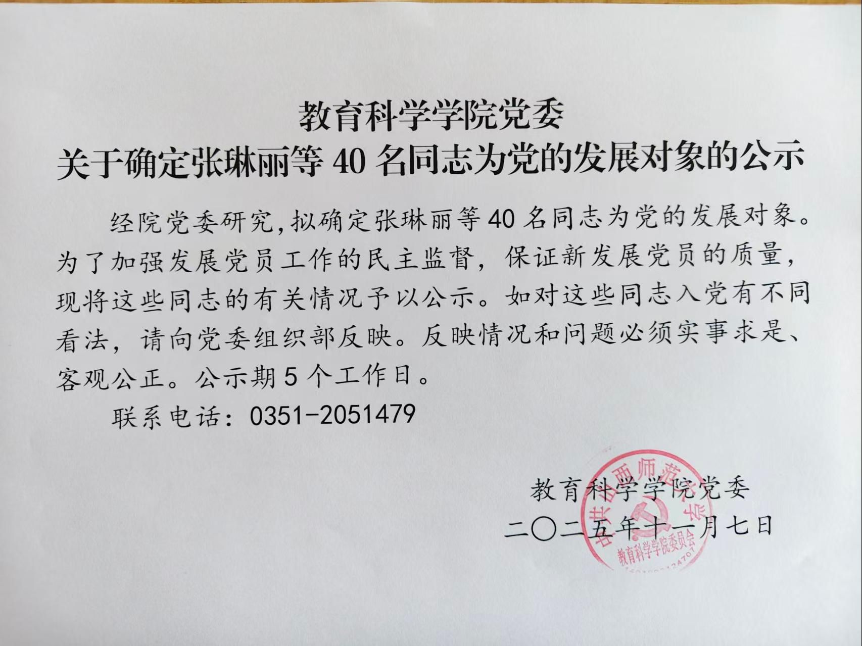 关于确定张琳丽等40名同志为党的发展对象的公示