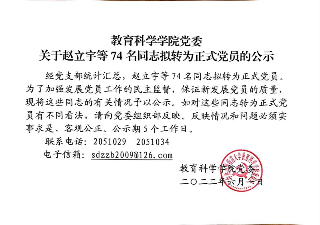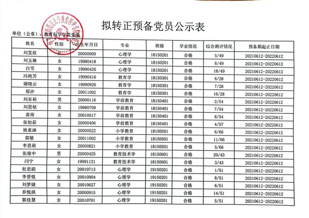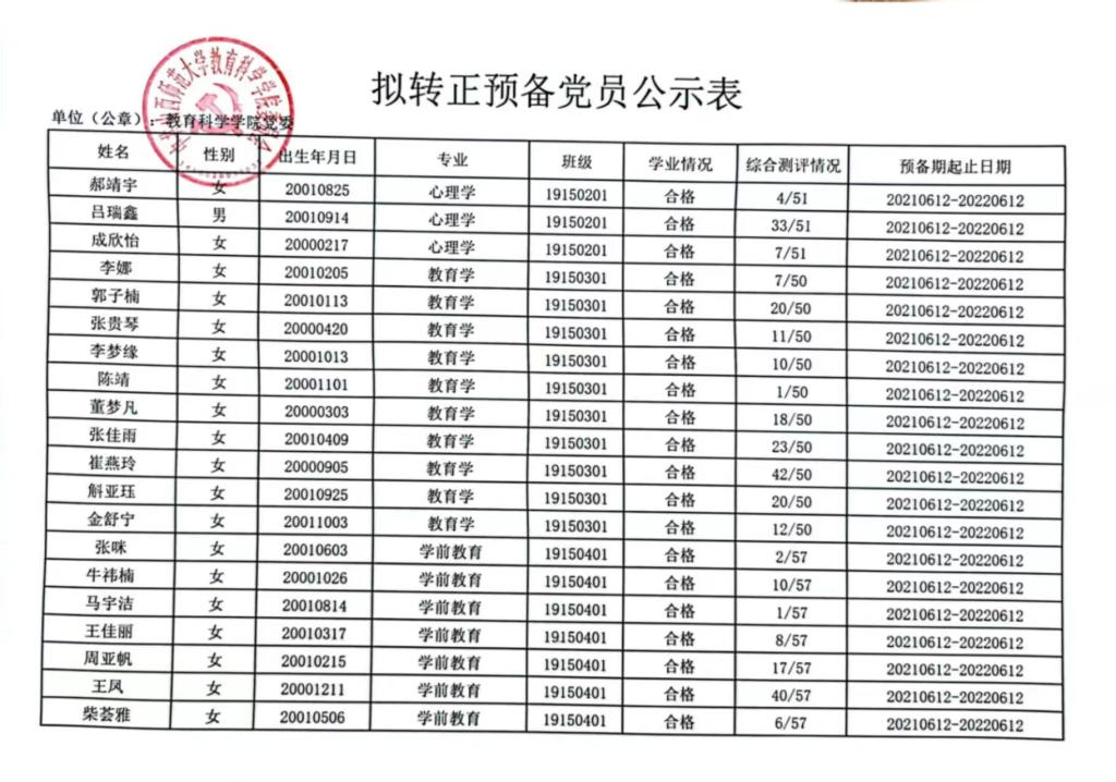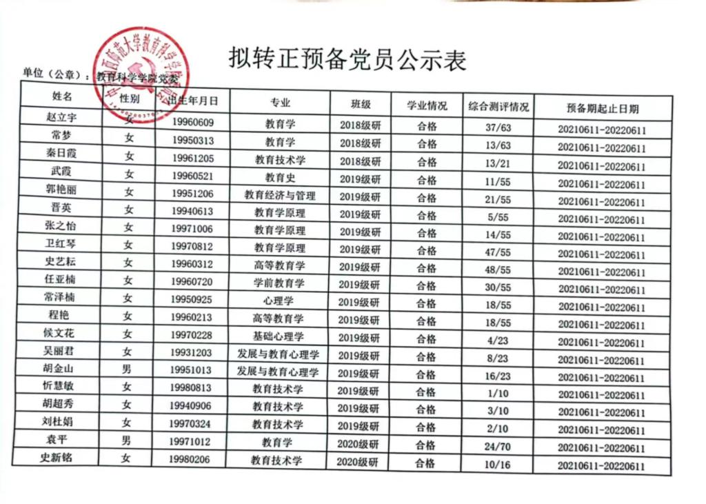 2022年6月拟转正预备党员公示