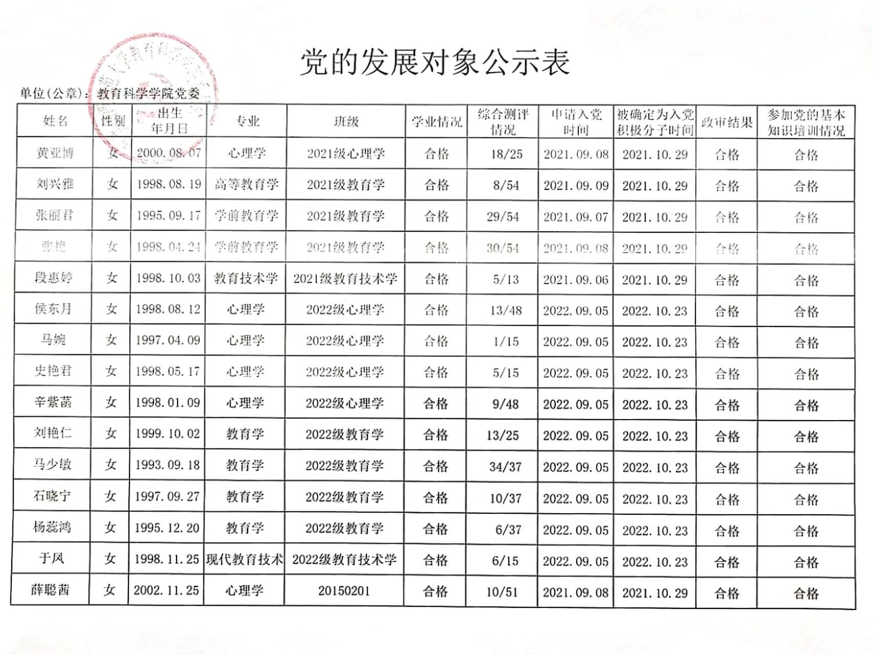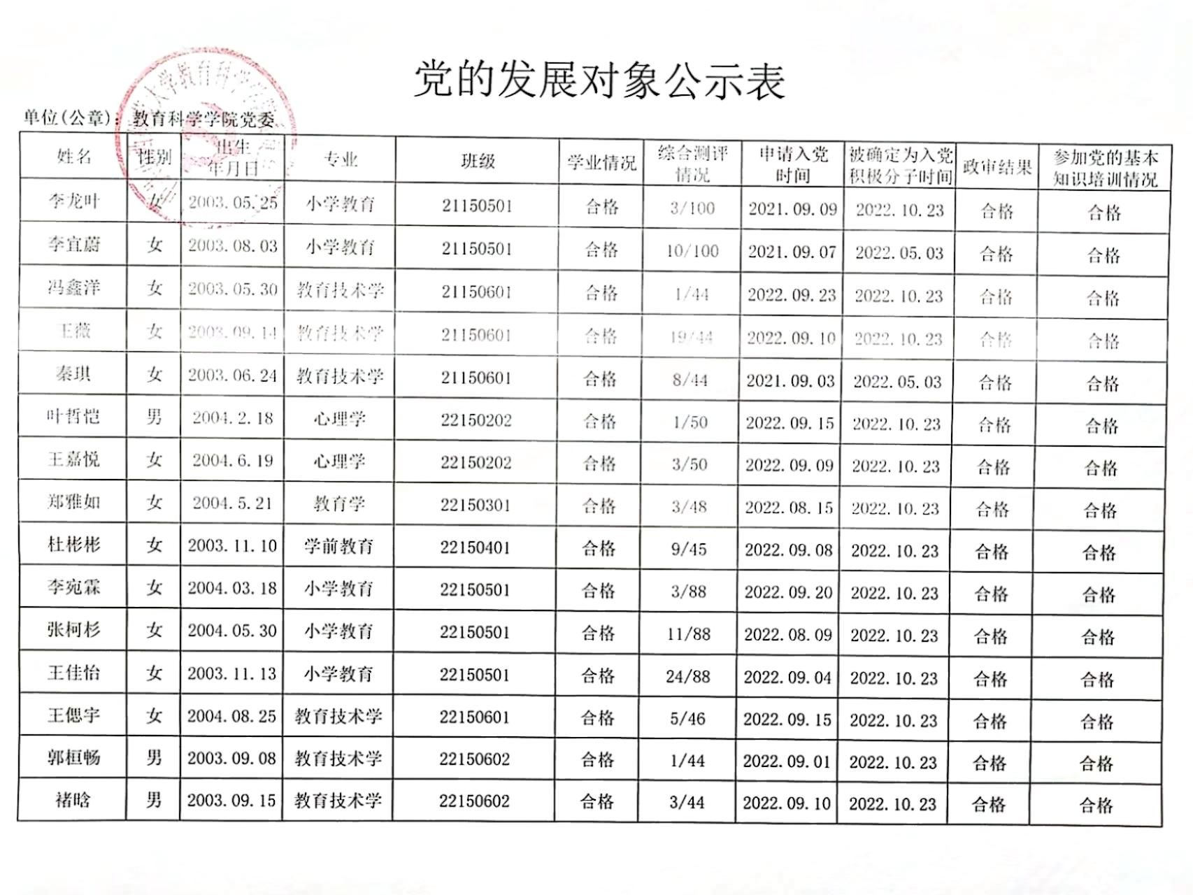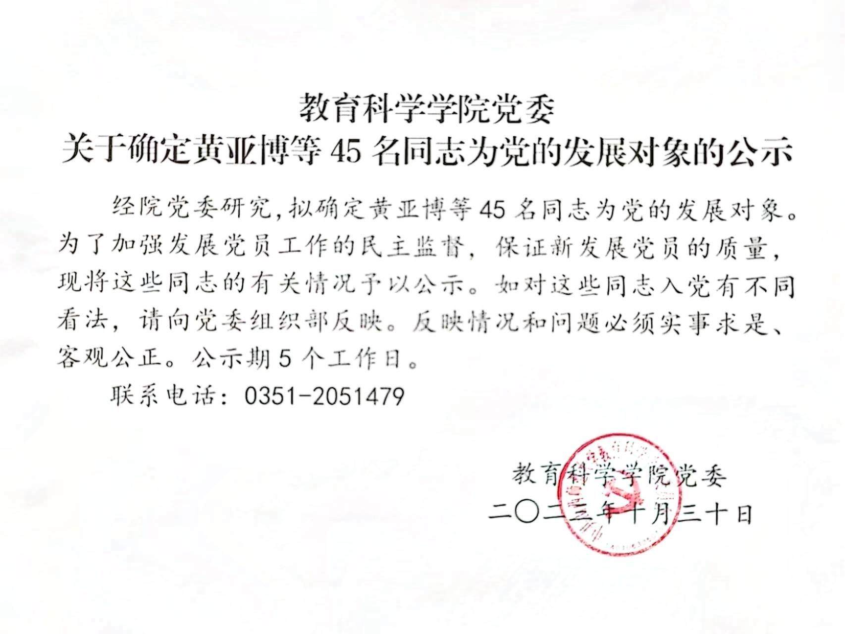 关于确定黄亚博等45名同志为党的发展对象的公示
