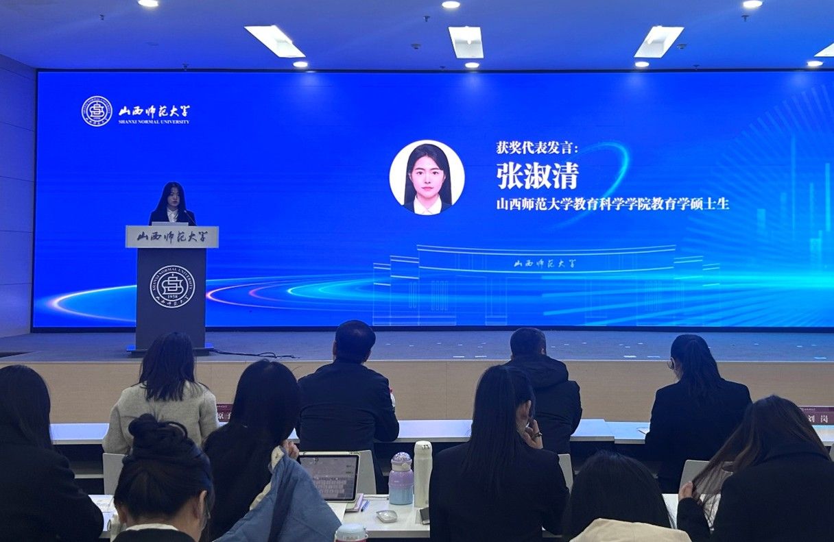 获奖代表张淑清同学在发言中分享了科研路上的探索与收获,对学院搭建学术交流平台、师长们的悉心指导表达了衷心的感谢。