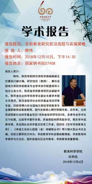 陕西学前师范学院学报编辑部熊伟主任应邀来我校作学术报告