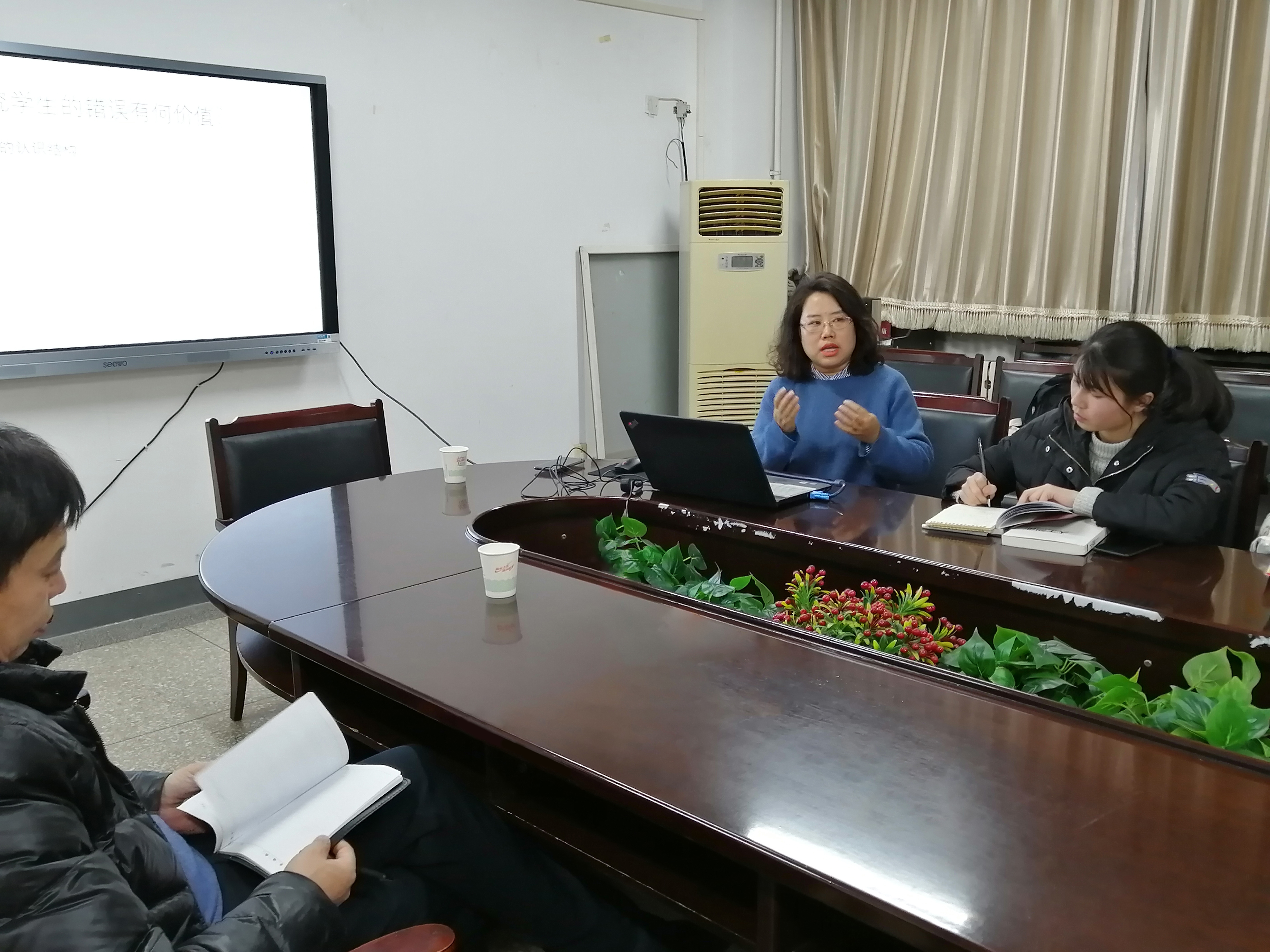 本次研讨会以“人工智能与大数据”为主题,“促进学术交流与技术发展”为主旨。师生共同探讨在人工智能与大数据的背景下,大数据、学生知识纠错和教师专业能力发展的关系。会议由刘丽萍老师关于“大数据、学生知识纠错和教师专业能力发展的关系”开始。刘老师分别从学生会犯何种错误、学生的错误怎样促进教与学、研究学生的错误有何价值、大数据技术能否更好地实现因材施教等四个方面阐述了大数据、学生知识纠错和教师专业能力发展的关系,使与会者受益匪浅,讨论热烈,并决定在认知导师模型建构与学生犯错的关系方面做进一步的探讨与研究。