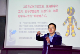范保玉老师从时代政策要求、当前学校教育的短板、跨学科综合实践理论、世易时移四个方面出发,以机器人创客少儿编程为例,为师生们讲述了培养跨学科综合实践能力的方法。首先,他通过播放机器人的相关视频,提出“人是否是生产力中的唯一能动要素”这一问题,指出了我们在当今社会面对的挑战。随后,结合时政指出当代教育教学中的优势及不足,引出了本次讲座的核心内容——“如何保持先进性”。他以举例子、展示模型、演示scratch编程的形式,形象生动地讲解了布鲁姆教学目标分类理论在实践中的应用,通过生活中的实际问题说明了培养跨学科综合创新思维能力的重要性。他指出,从时代与国家层面看教育、从知识和教育本质谈教育,从机器人创客谈跨学科综合实践。大学生应该从实践出发,把握时代发展的潮流和方向,培养立体认知和批判思维,从而提高自己的跨学科综合实践能力。在互动答疑环节,范保玉老师与参会师生积极互动,并对大家提出的问题进行了耐心地解答和交流。