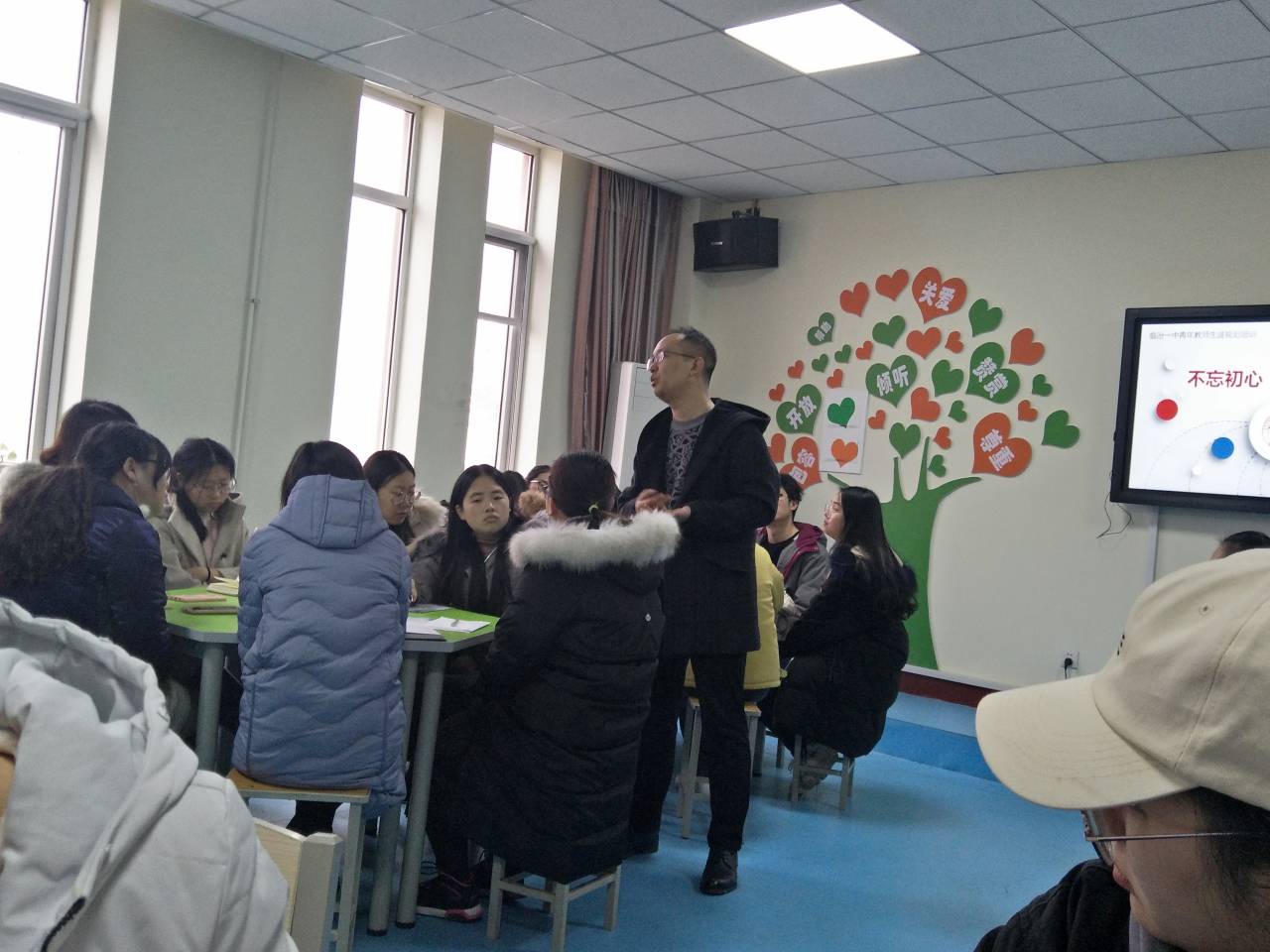 随后,来自临汾一中的卫晓婷老师和李鹏翀老师给所有同学进行了中学心理健康教育工作的培训,老师们结合很多具体生动的案例,将自己在多年实践中积累的经验倾囊相授,不仅增长了学生的知识和经验,而且还让大家深深意识到作为一名心理学人的责任感和使命感。最后两位老师代表临汾一中心理健康中心对同学们下学期实习工作的顺利进行提出了衷心祝愿。
