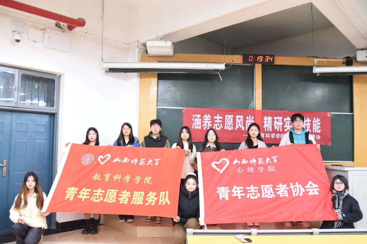青年志愿者协会与心理学院青年志愿者协会在南区5号教学楼5106教室联合举办“涵养志愿风尚,精研实用技能”主题培训活动,两院青协全体成员积极参与。
