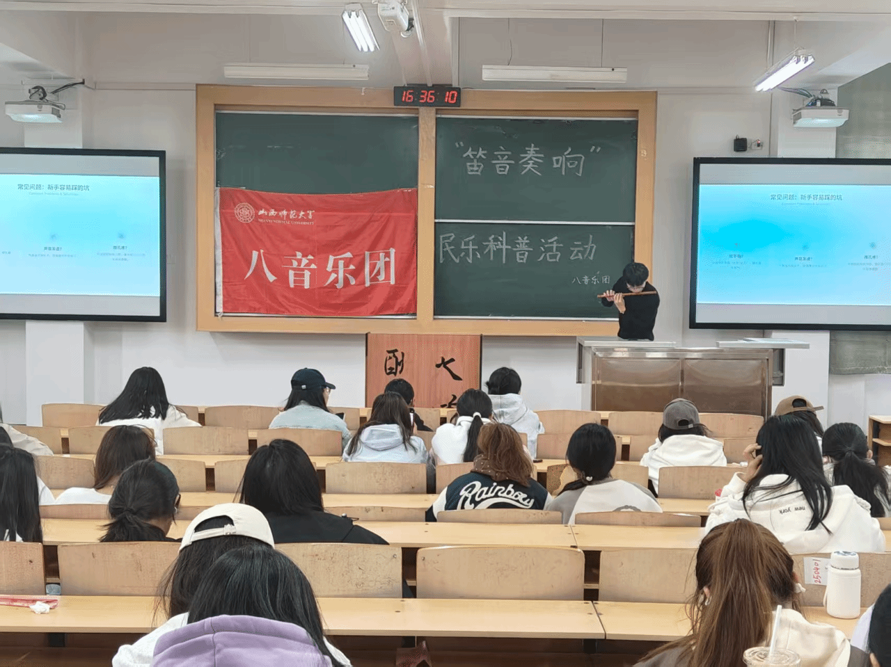 11月2日下午,八音乐团在南区3310教室举办“笛音奏响”民乐科普活动,吸引了众多民乐爱好者与同学们积极参与。