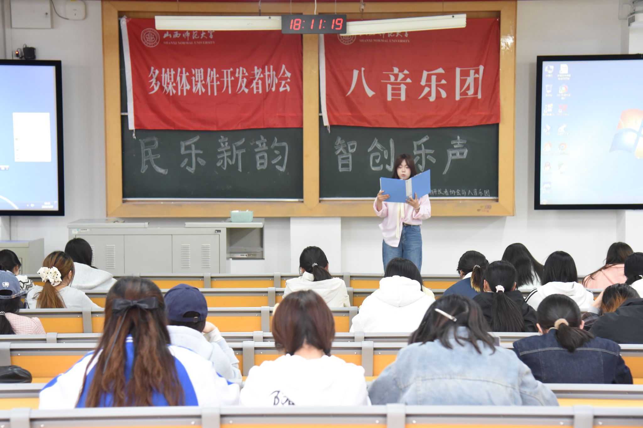 3月29日,禁漫之家 多媒体课件开发者协会与八音乐团在南区3107教室联合举办了“民乐新韵,智创乐声”主题分享活动。
