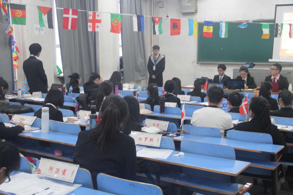 主办,模拟联合国协会(简称“模联”)承办的第四届模拟联合国大会——“全球范围内女性权益的保护问题”主题辩论会在10106教室举办。我校模拟联合国协会全体成员、校内非协会代表以及运城学院代表团和山西财经大学代表团参加了本次会议。