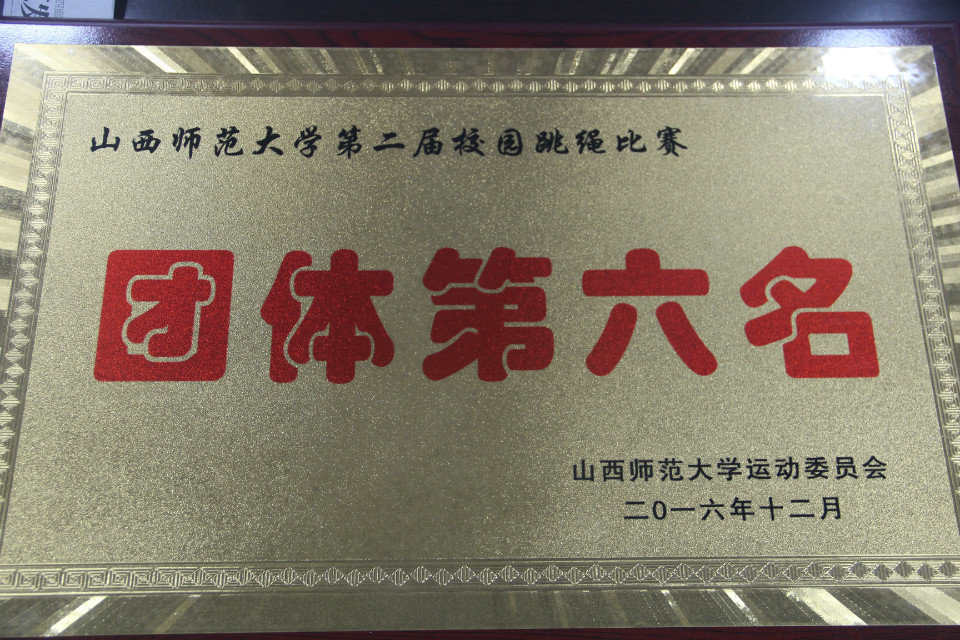 参赛选手不负众望,最终获得了2016年校园跳绳比赛团体组第六名的好成绩。